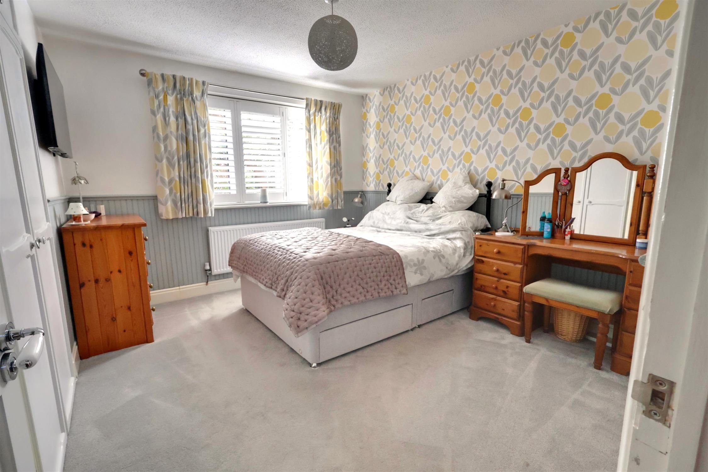Double glazed window with fitted shutters to front aspect. Radiator. Built-in double wardrobes.