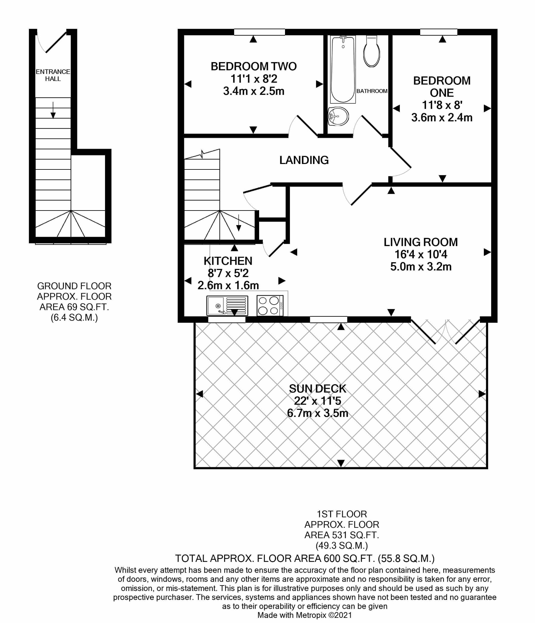 DESCRIPTION NO FORWARD CHAIN. A first floor two bedroom flat located to the south west of Fareham town centre which benefits from its own large south facing sun deck. The property briefly consists of its own private front door with staircase to first floor, landing, living room with double glazed French doors leading to sun deck and open plan to the kitchen. There are two bedrooms which share the three piece bathroom. The property benefits from double glazing and is gas central heated. The property also has the added advantage of one allocated parking space. As sole agents we would highly recommend an early inspection.