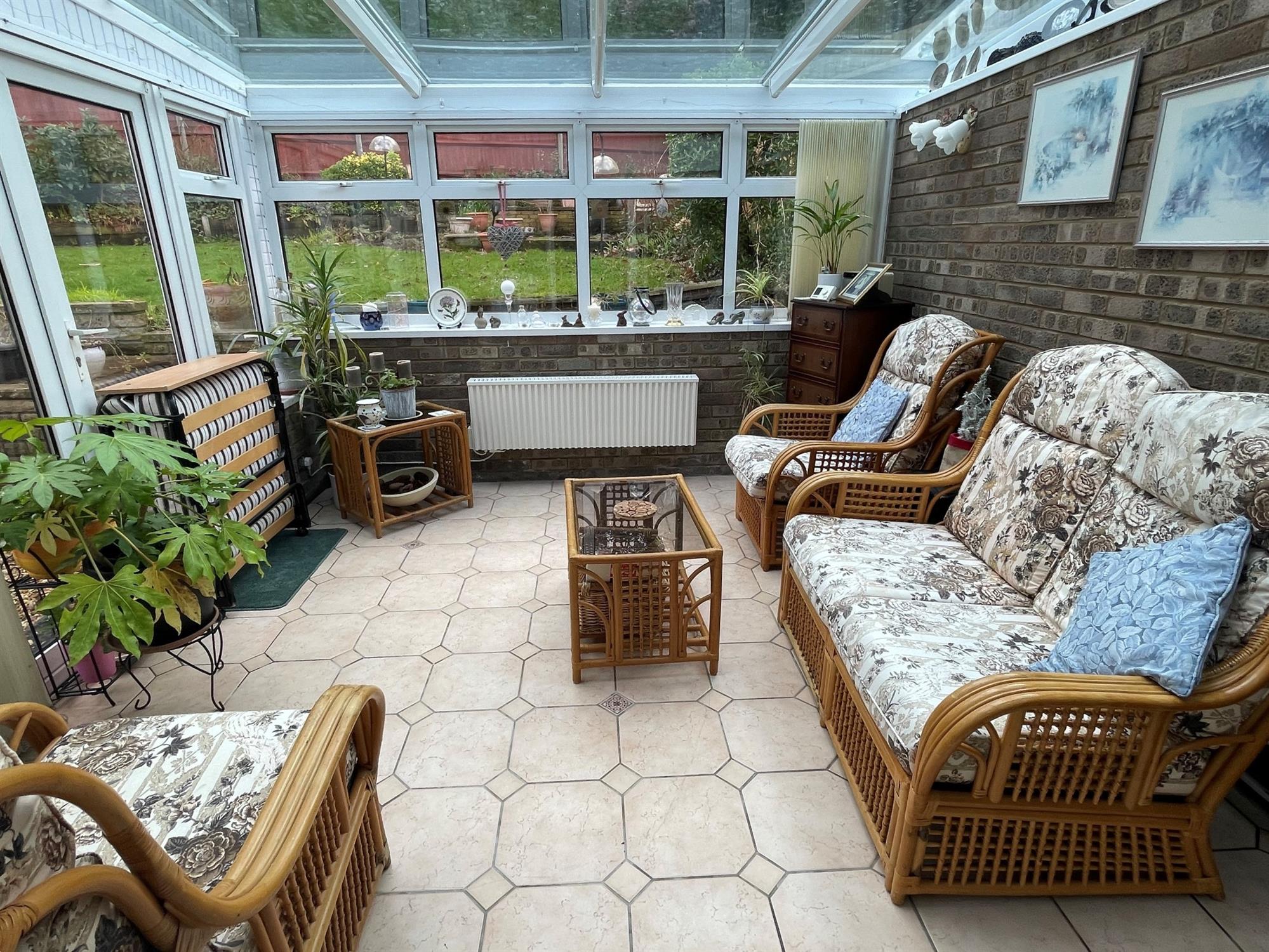 Of brick and UPVC construction with glass roof. Tiled flooring. Radiator. Doors to garden.