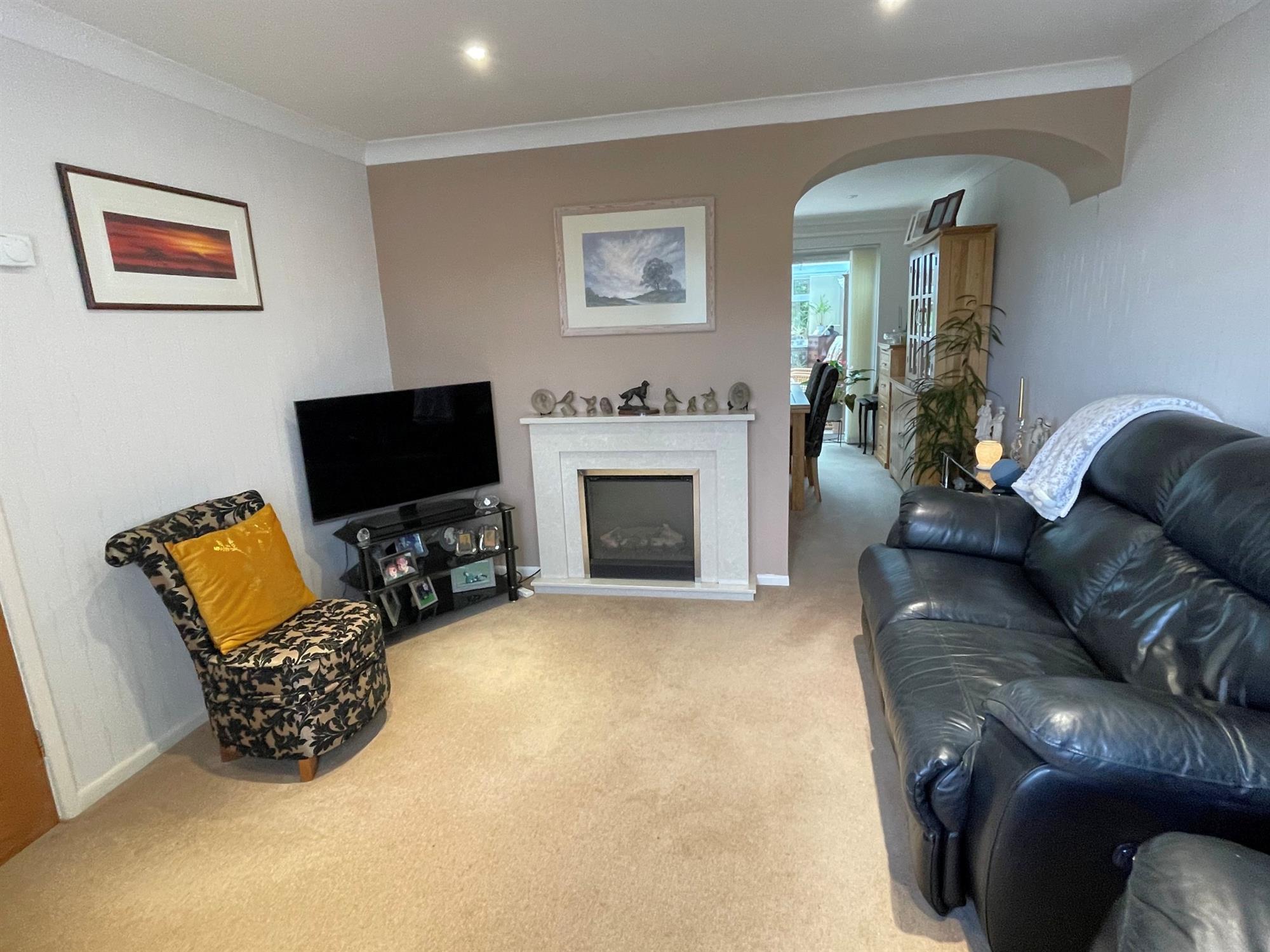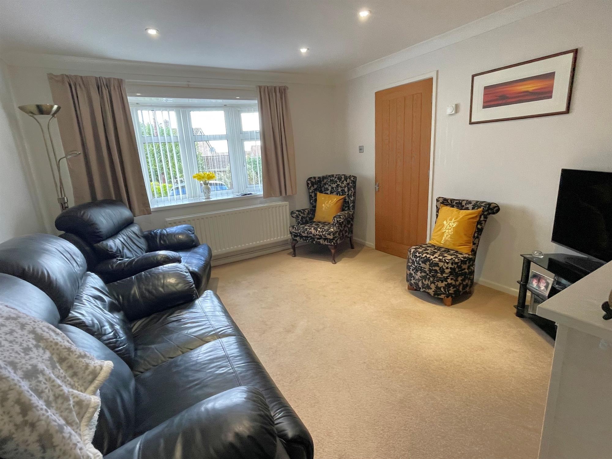Bow window to front. Television point. Coal effect fire with mantle over. Radiator.