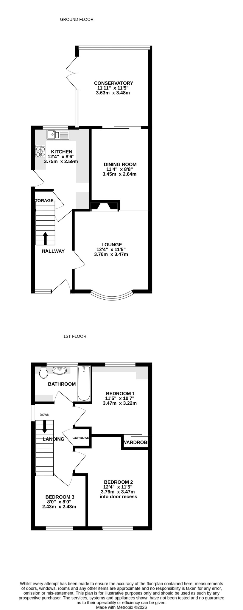 12' 4" (3.76m) x 11' 5" (3.48m)::