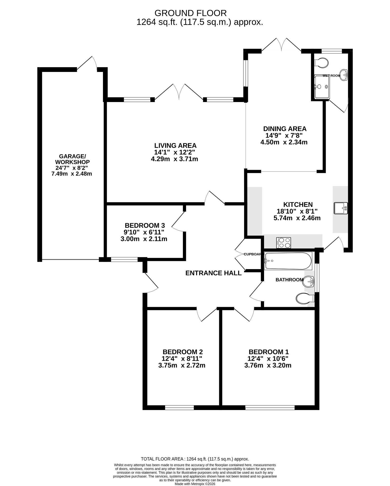12' 4" (3.76m) x 10' 6" (3.20m):