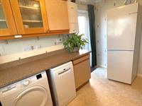 Window to rear. Range of wall and base units with work surfaces over. One and a half bowl stainless steel sink unit with mixer tap. Four ring gas hob with extractor over. Built in electric oven. Space and plumbing for washing machine and dishwasher. Space for tumble dryer. Space for fridge freezer. Wall mounted gas boiler. Door to side.