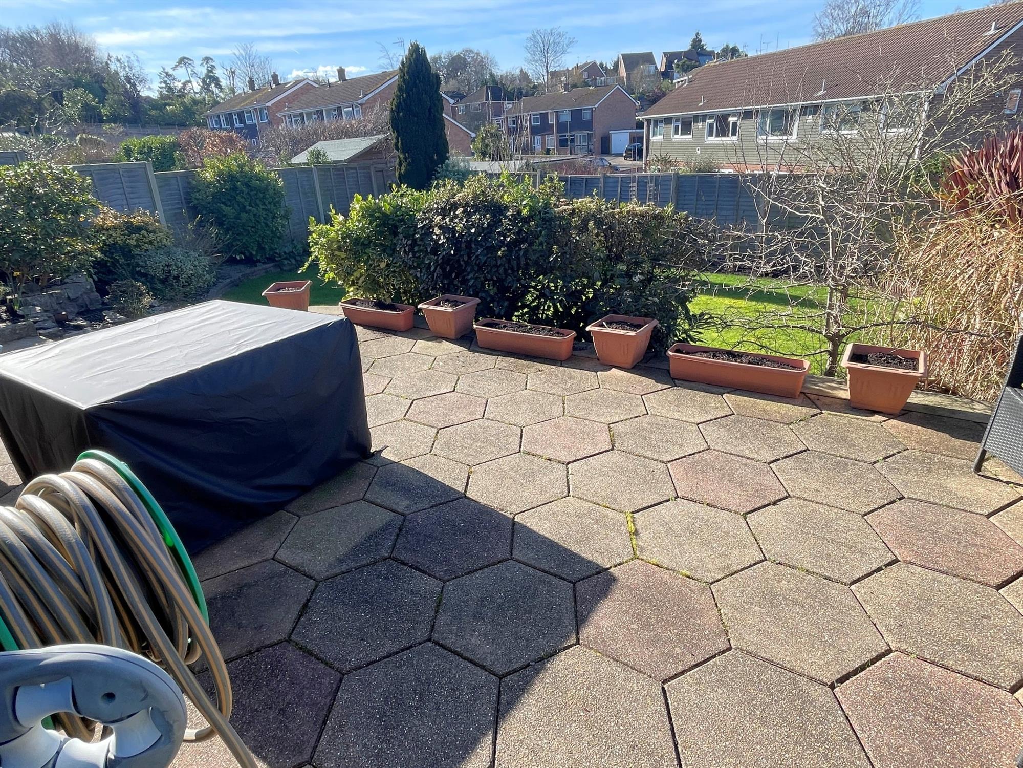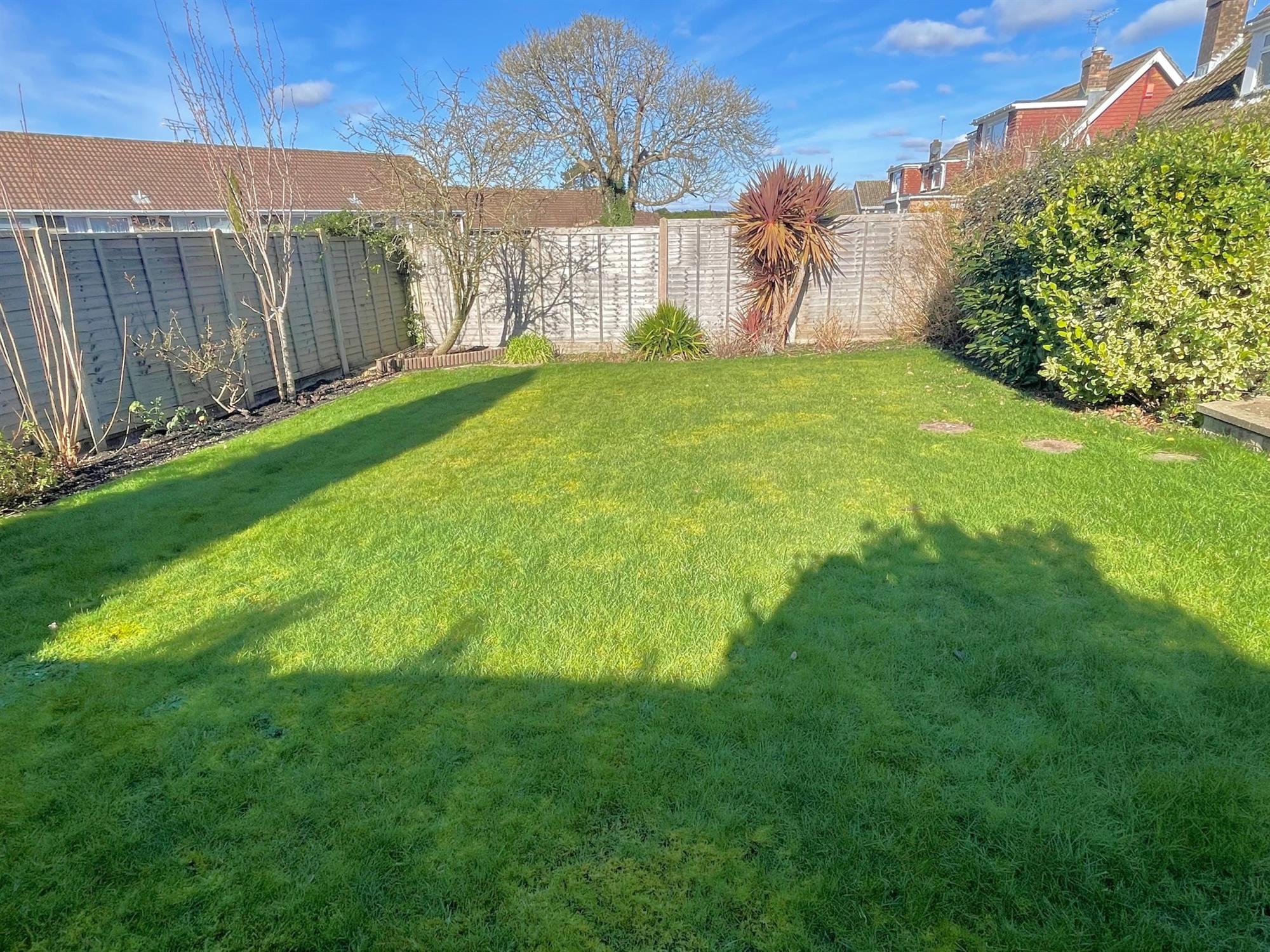 South facing. Fenced to boundaries. Paved patio. Steps down to lawn area with mature shrubs to borders. Pedestrian side access.
