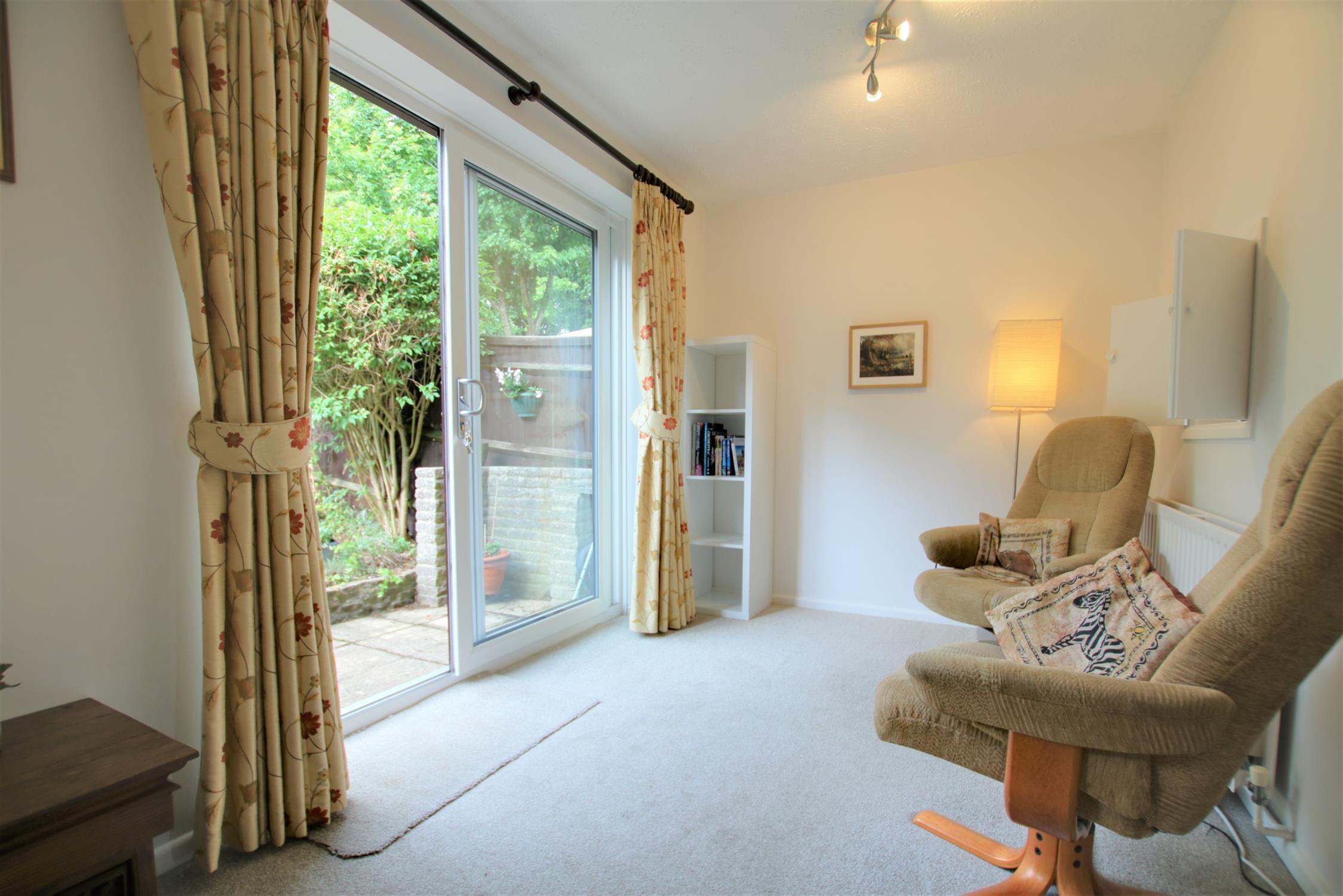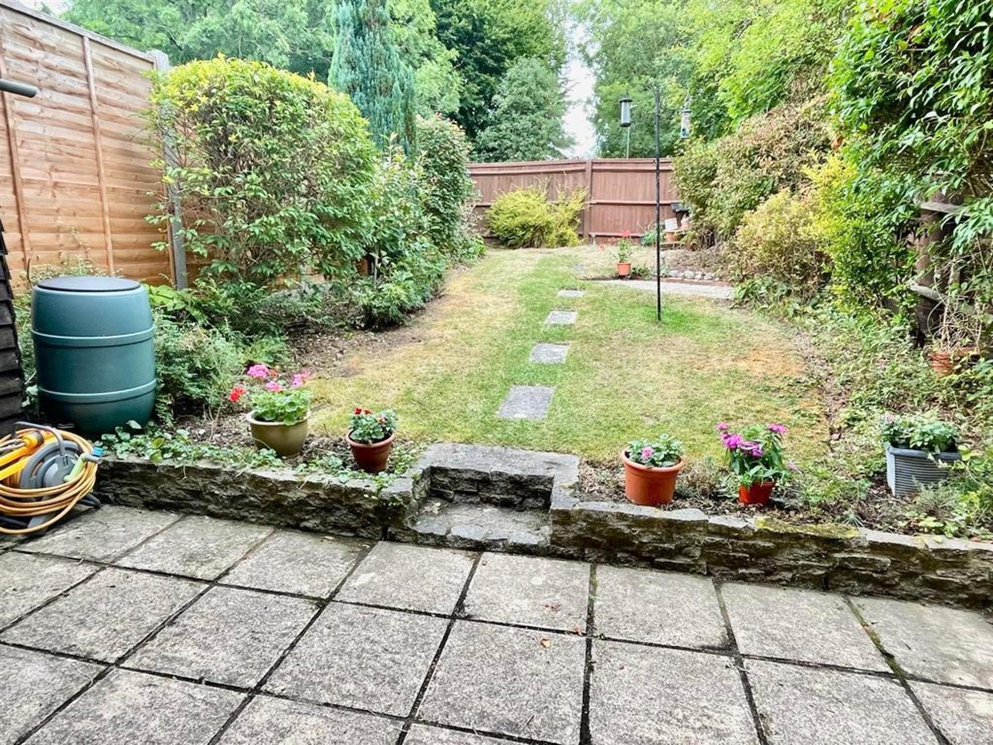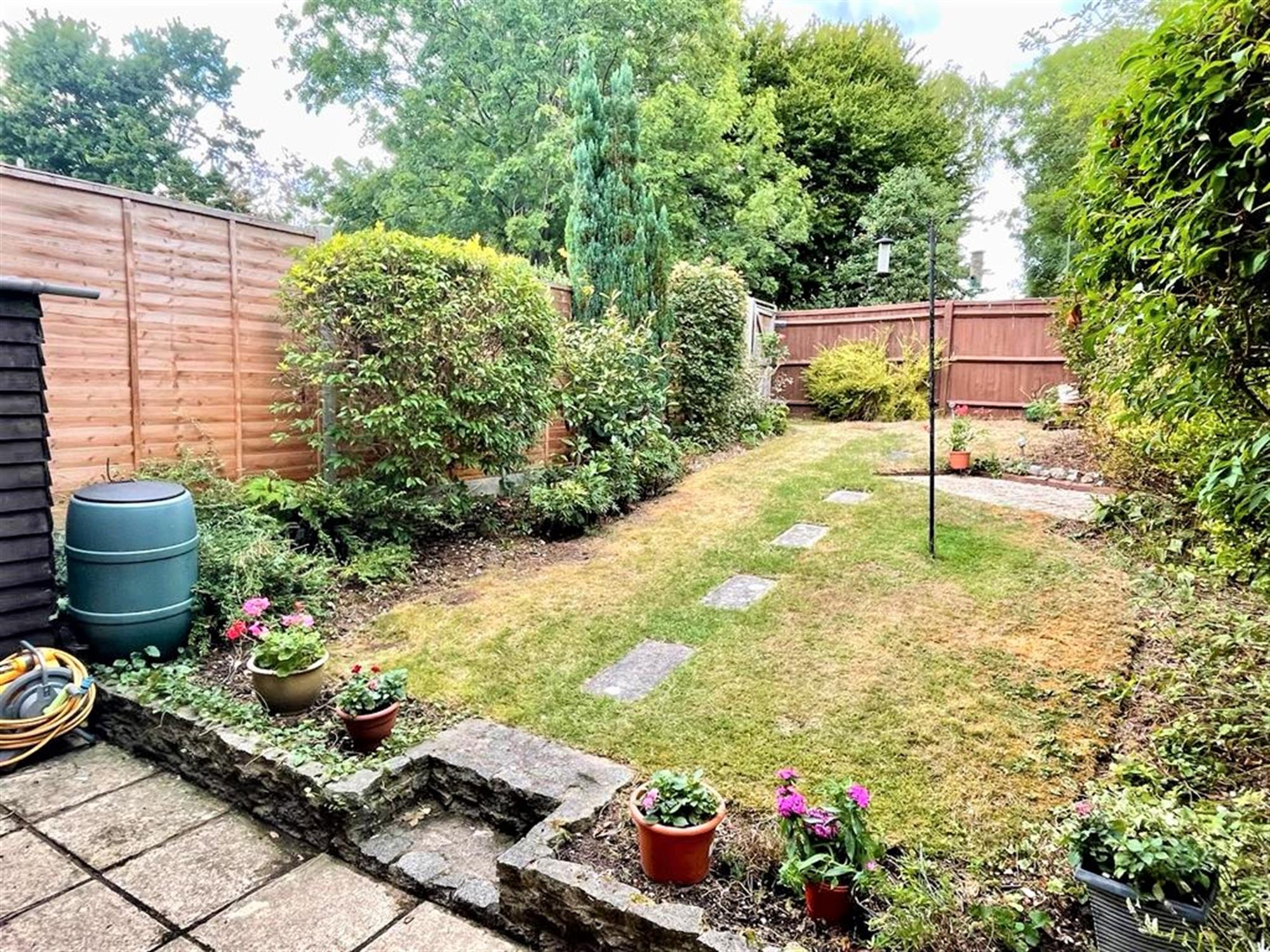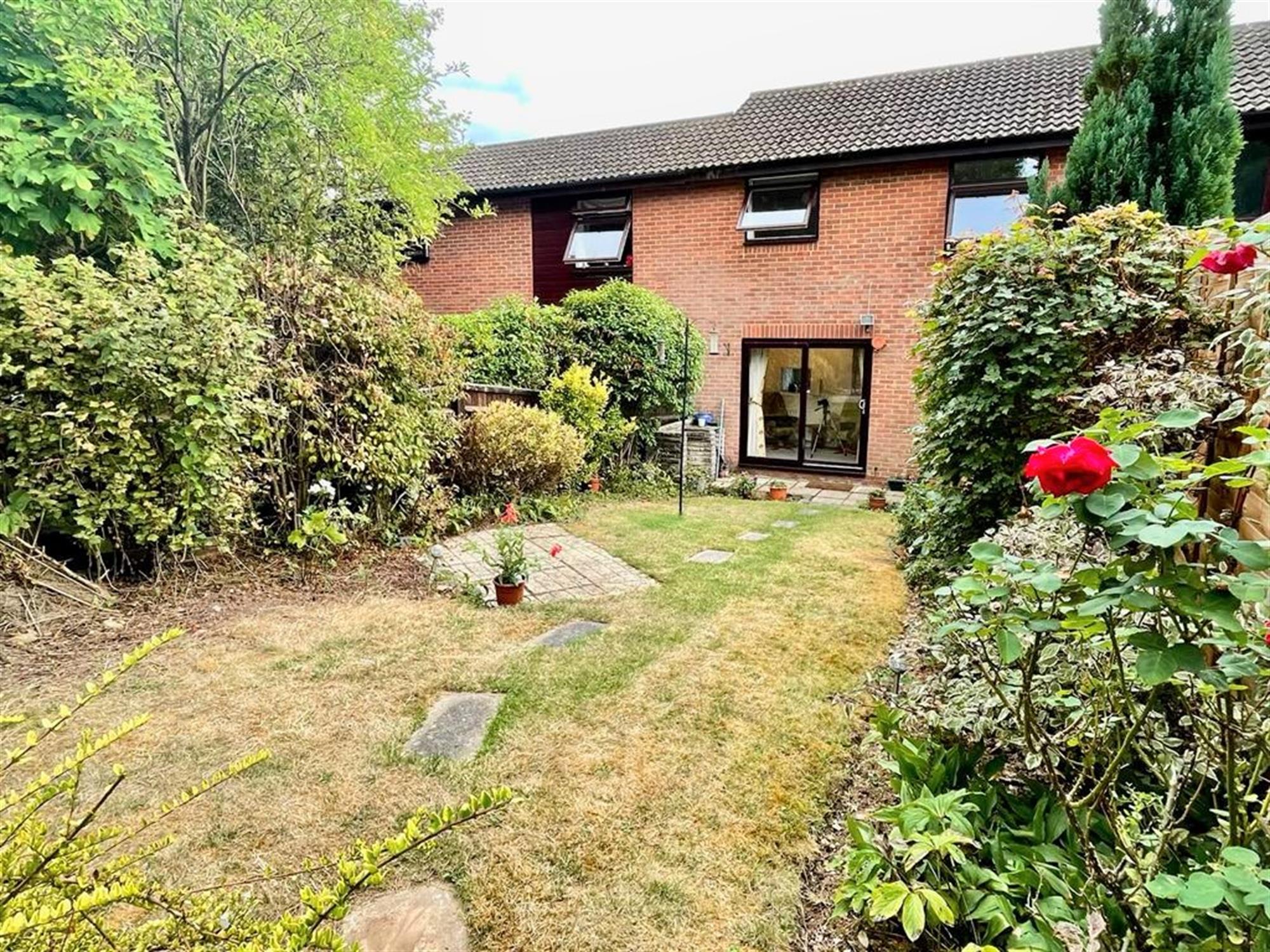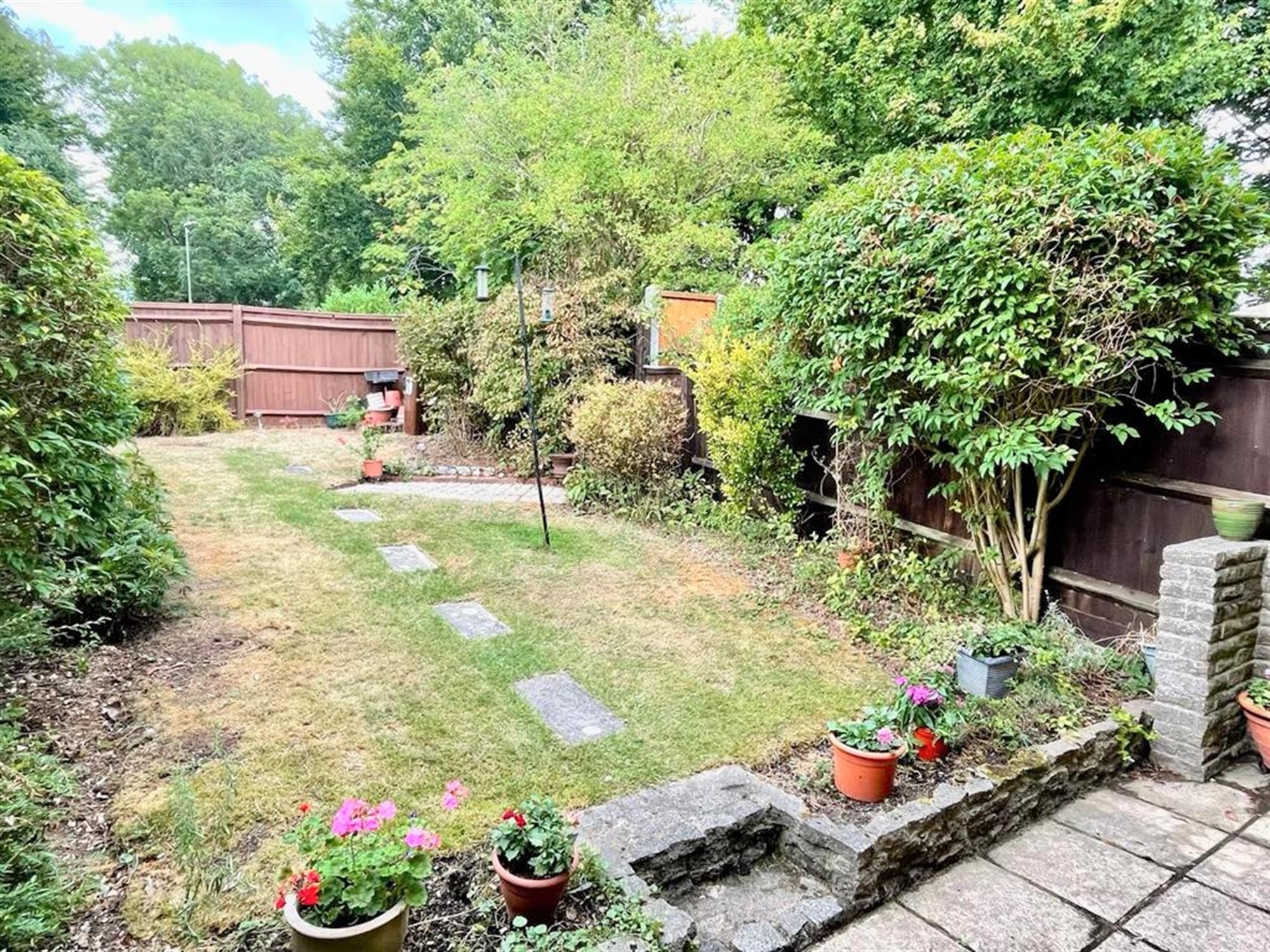 The sunny rear garden is well-tended and pretty. There is a patio seating area accessed via the living room and the rest of the garden is majority laid to lawn and bordered by mature shrubbery. A path leads to a gate at the end of the garden which provides rear access to the neighbourhood park behind, and there is also a garage in block nearby.