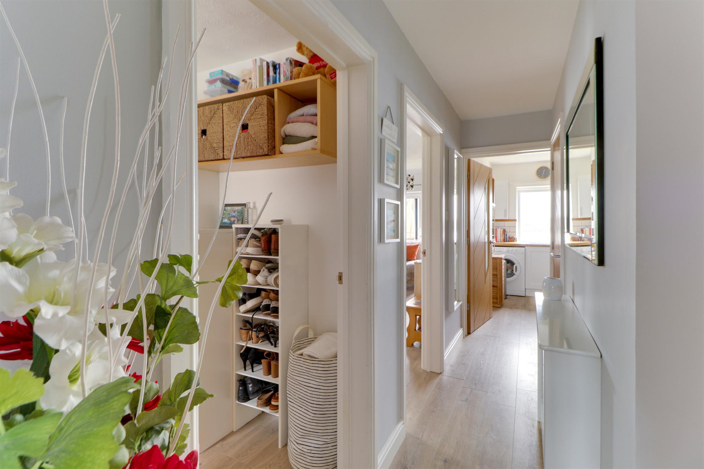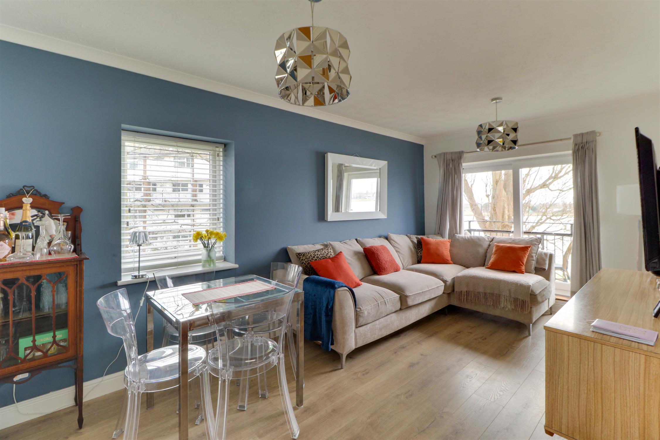 Textured and coved ceiling, dual-aspect UPVC double-glazed windows and doors to balcony, radiator and laminate flooring.