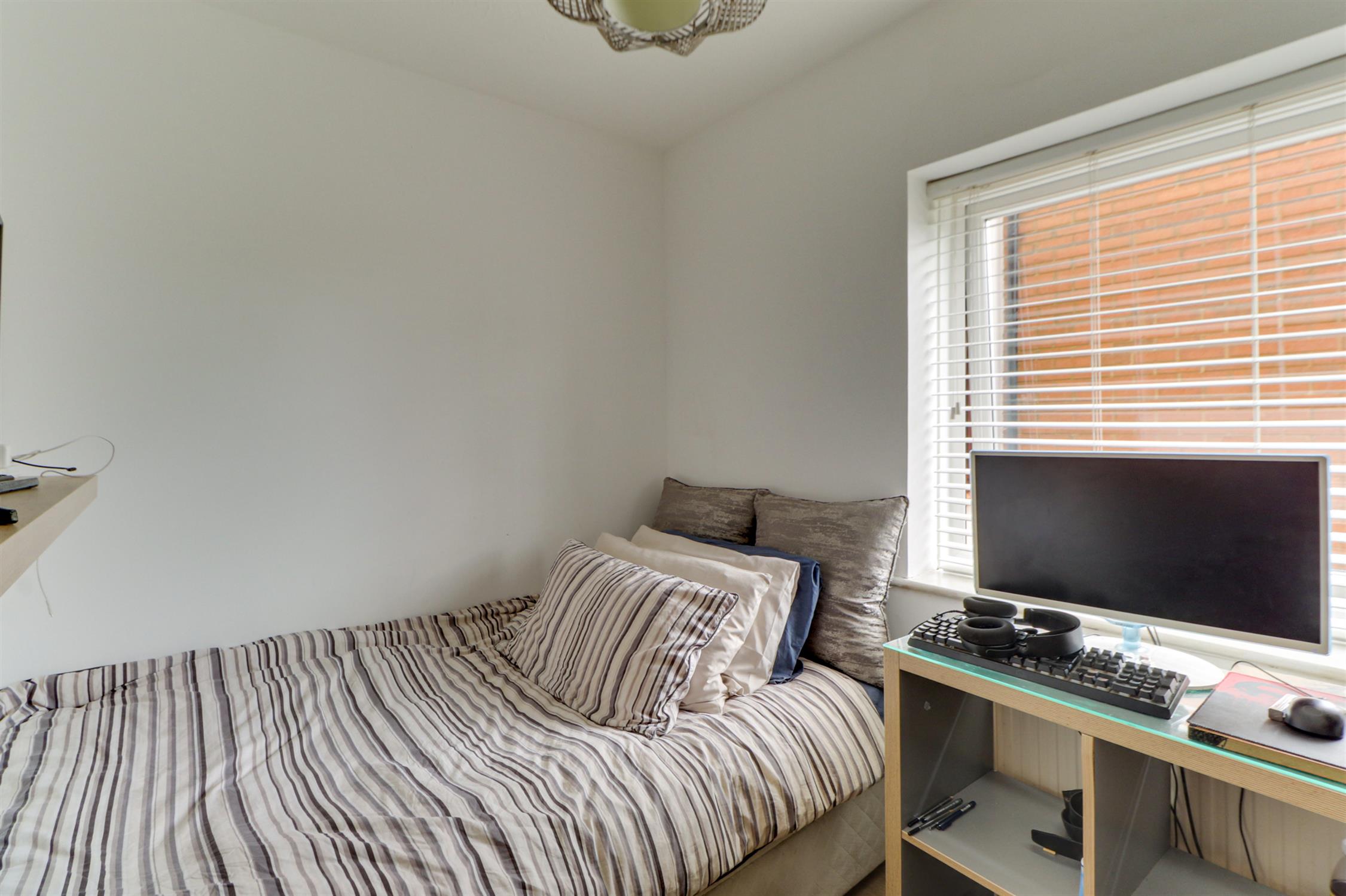 Textured ceiling, UPVC double-glazed window, radiator and laminate flooring.