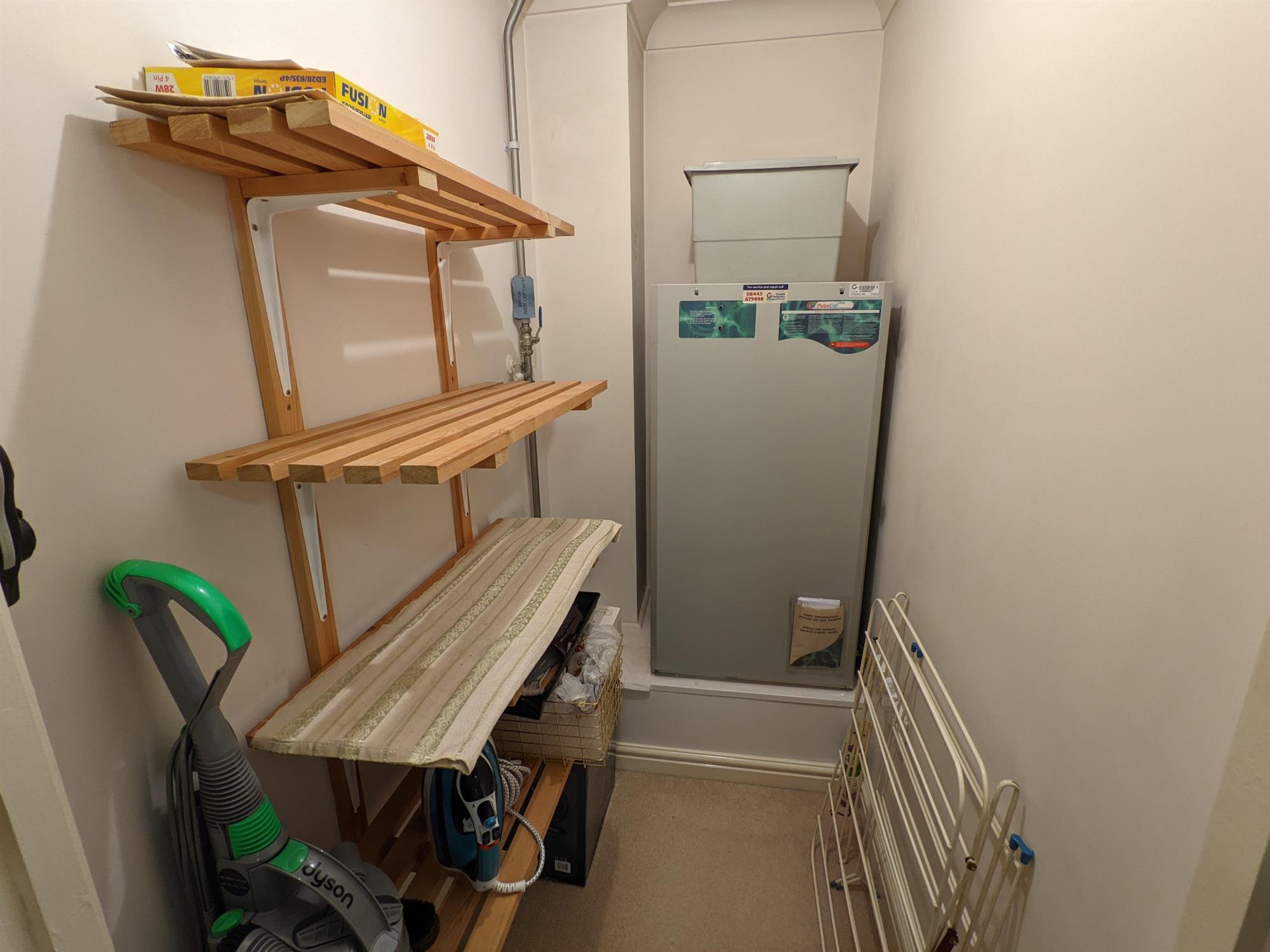 Emergency intercom, door entry system, intruder alarm, smoke detector. Power points. Large walk in airing cupboard with shelving housing the insulated hot water cylinder with fitted electric immersion heater. Storage cupboard housing electric meters.