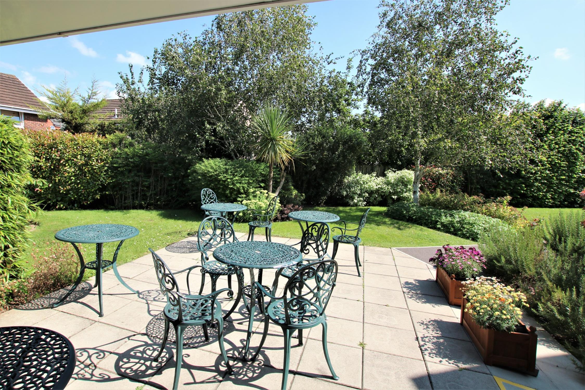 Communal gardens with well-maintained areas of lawn incorporating seating areas with a good variety of shrub, flower and tree borders. Access to the residents' car parking.