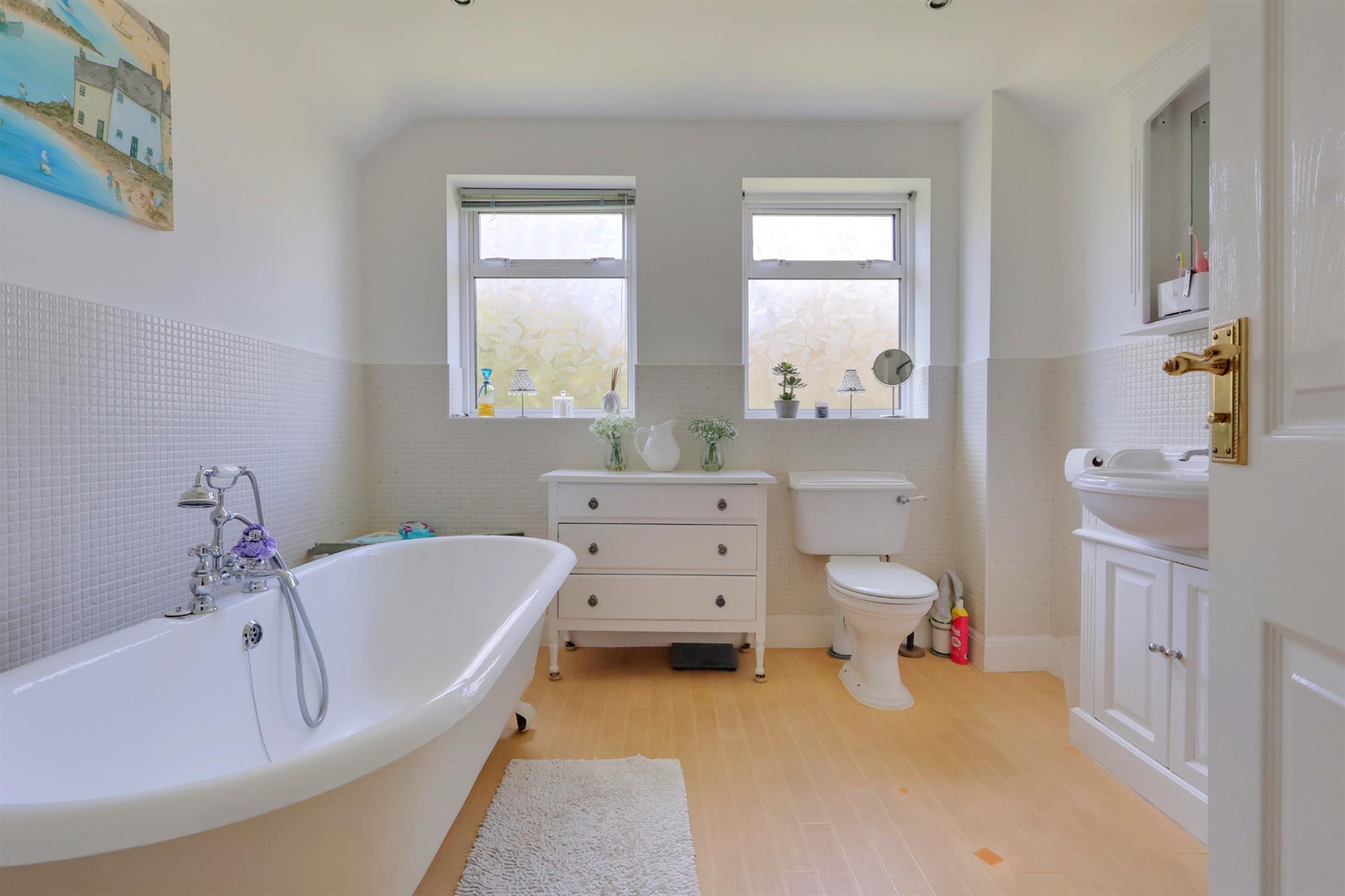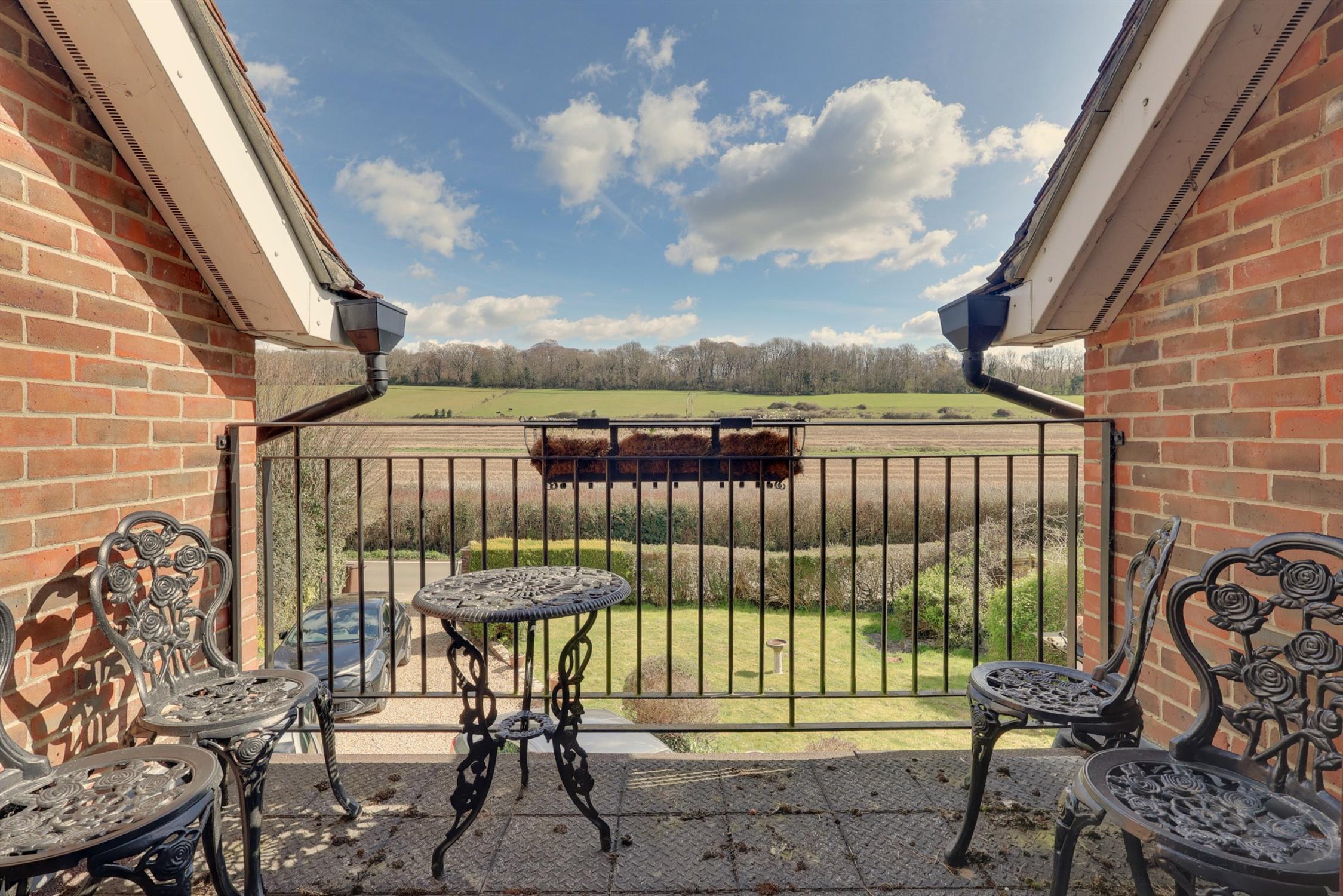 The dining room also features an open fireplace with French doors that open into the rear garden and a discreet staircase, that provides access into the study. There is a spacious kitchen/breakfast room which opens into a separate utility area. There is a separate cloakroom and WC which completes the ground floor accommodation. The first floor landing has French doors which open onto the balcony, that provide breathtaking views of green pasture. The landing has access to the master bedroom, which features a walk-in wardrobe and en-suite shower room, and a further double bedroom. The second floor landing provides an airing cupboard and access to the four piece family bathroom, and two further double bedrooms which draw in plenty of natural light. One of the top floor bedrooms has access into the loft space. The rear garden features a patio area and steps up onto the lawn, with mature shrubs, flowerbeds, summer house and side access. There is a gated entrance to the front of the property, with access to the driveway with parking for many vehicles. There is an area laid to lawn with mature shrubs and hedging, that provide a good deal of privacy. An internal viewing is highly recommended to appreciate the accommodation on offer.