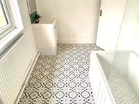 Located at the rear of the property with window overlooking garden, large storage cupboard understairs and further cupboard housing Combi boiler. Door to back porch and kitchen.