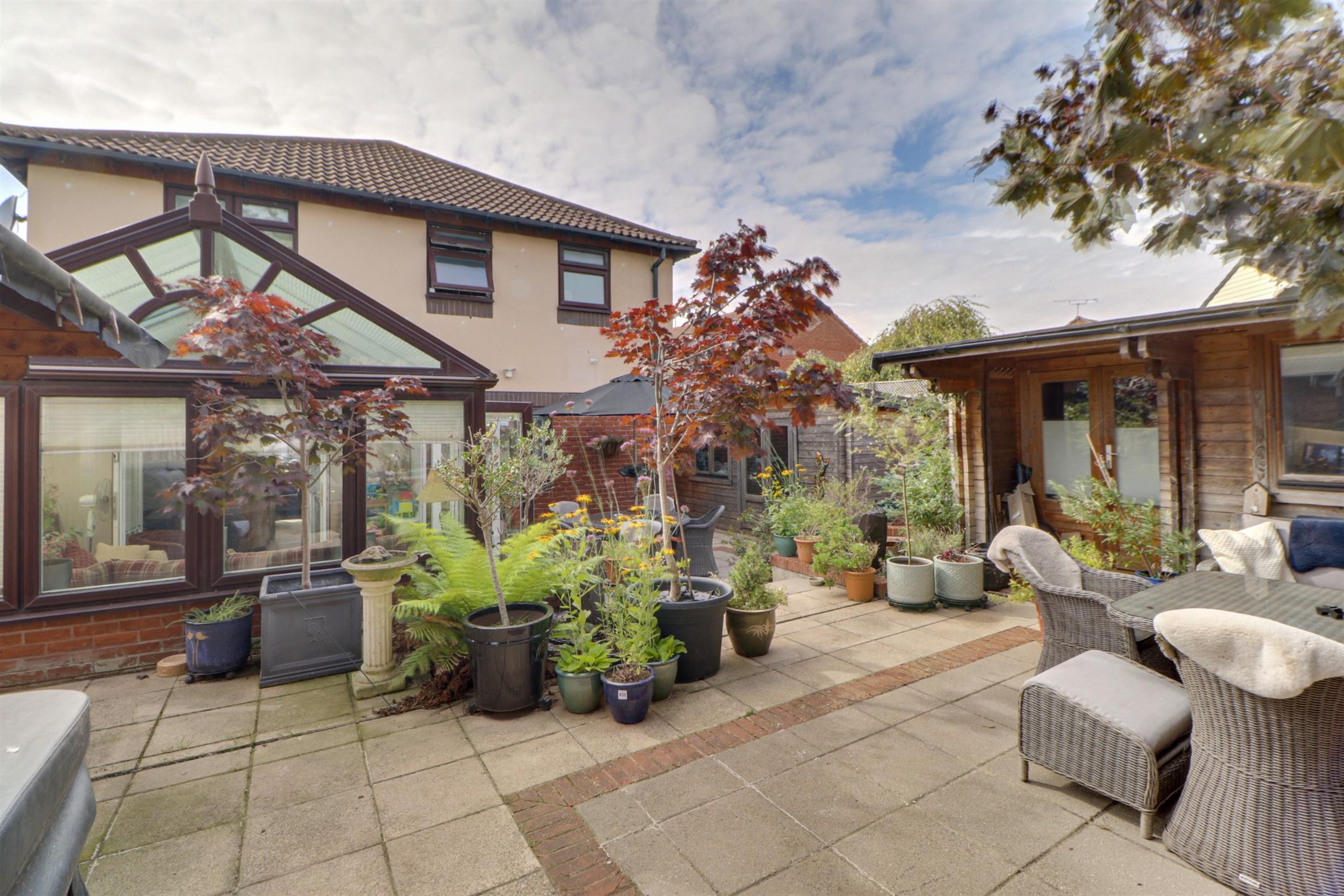Situated in a popular cul-de-sac in Anchorage Park, this detached home occupies a generous plot with an outstanding landscaped garden, complete with three substantial timber cabins, perfect for those looking for a home office, hobbies space or for storage - or perhaps all three! A sweeping frontage, block paved driveway, and single garage will help to keep the whole family happy with off-street parking for multiple vehicles.