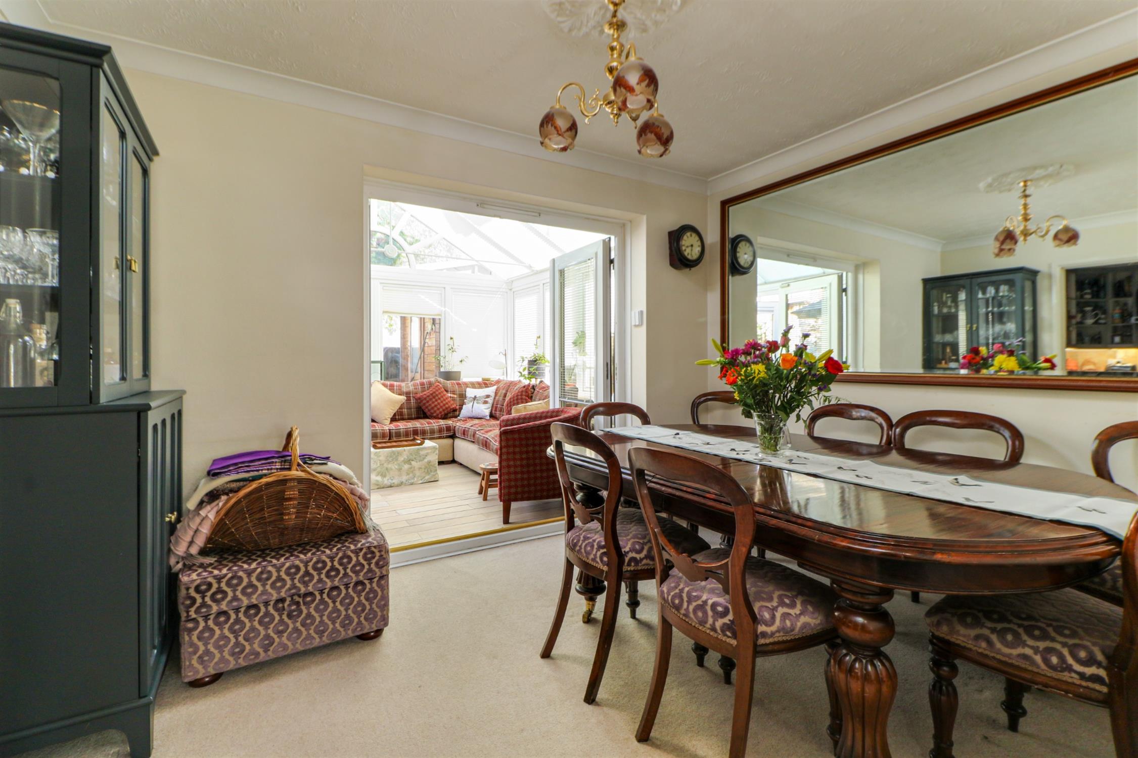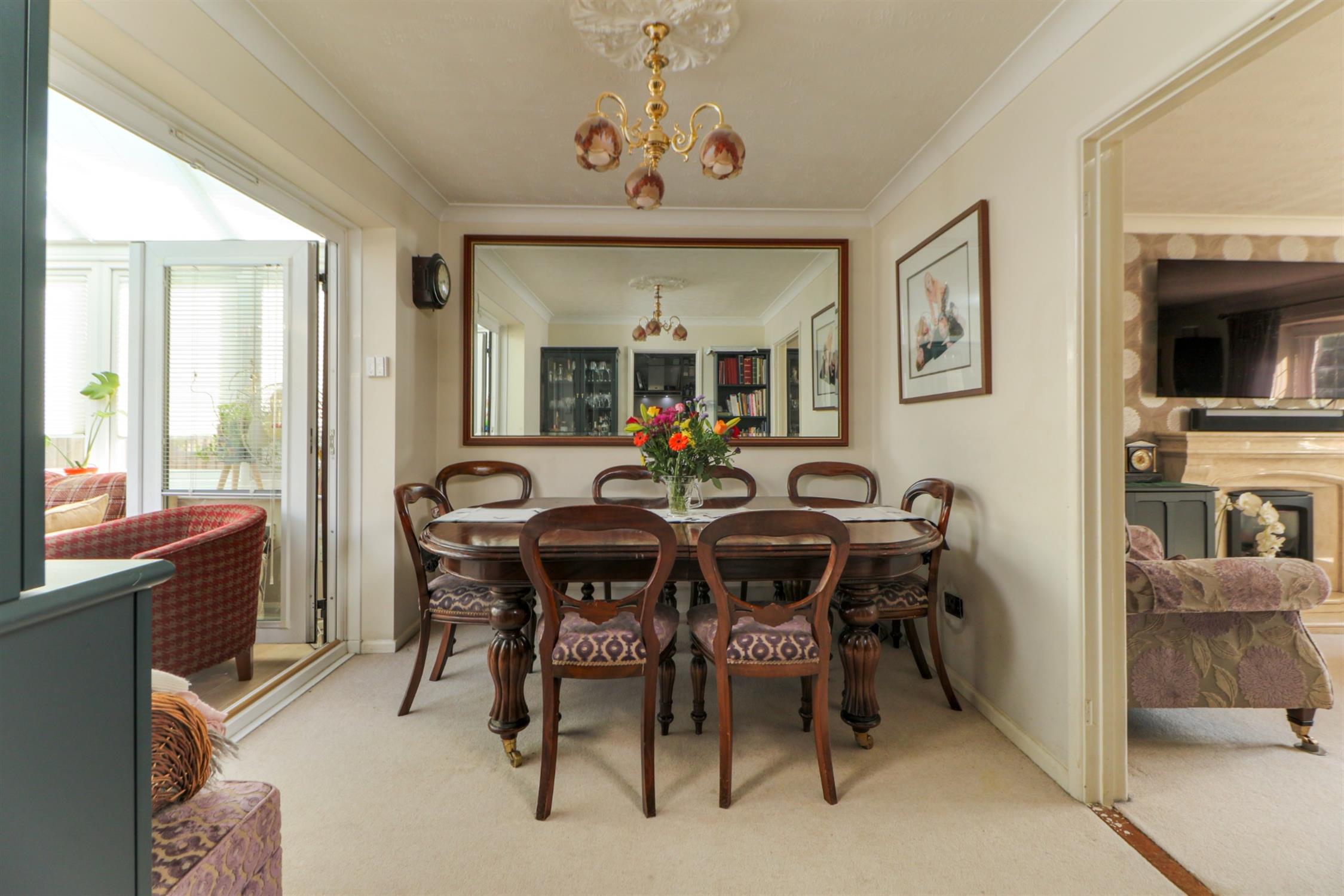 Double glazed double doors to conservatory, radiator, fitted carpet.