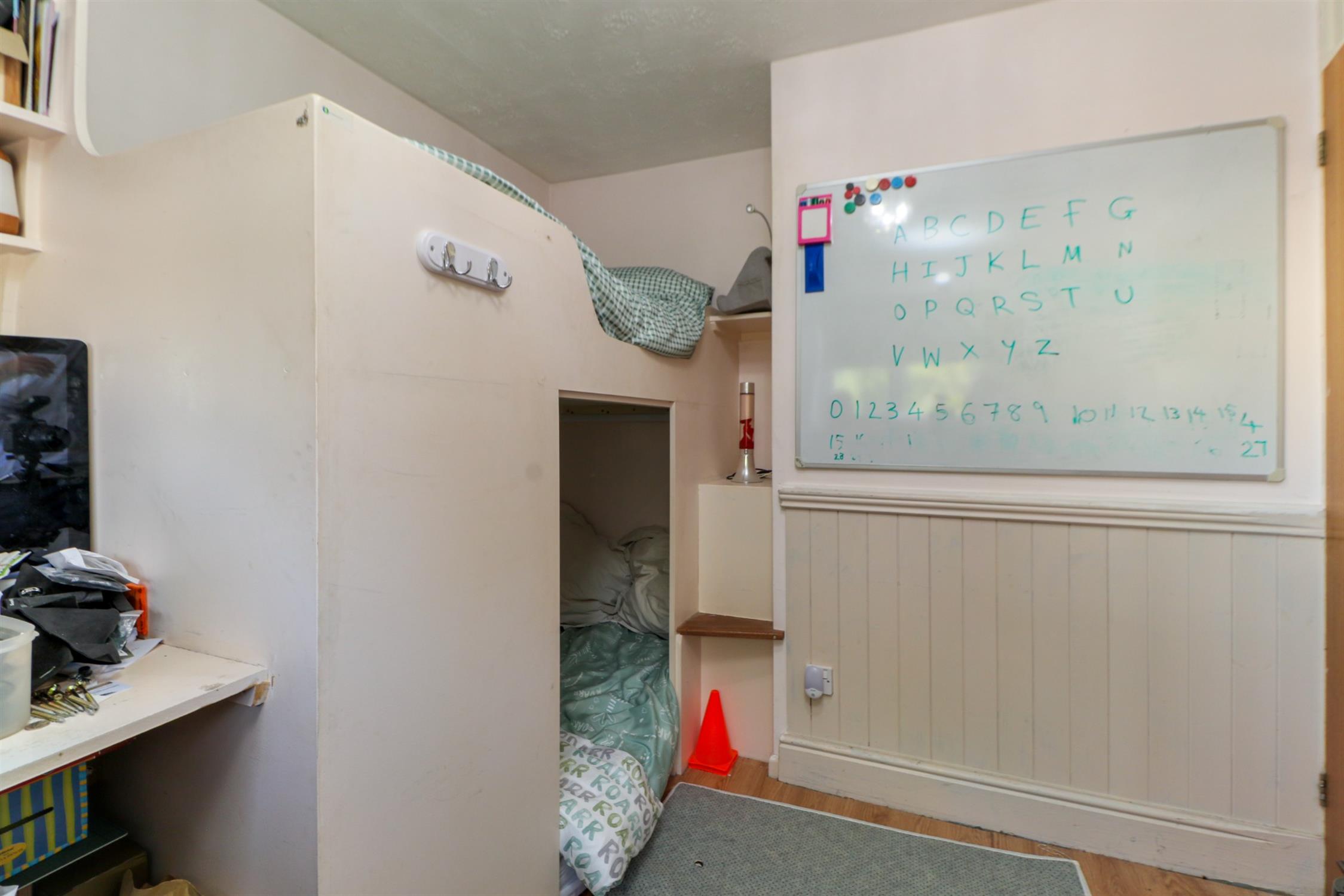 Double glazed window, radiator, built in cabin style bed and desk, fitted carpet.