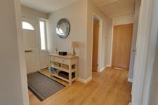 Double glazed window to side and rear aspects. Range of wall and base units with cupboards and drawers, bottle storage and plate rack. Work surface over, incorporating sink unit with mixer tap over. Built-in oven, fridge/freezer, dishwasher and electric hob with extractor hood over. Karndean flooring. Through to dining area.