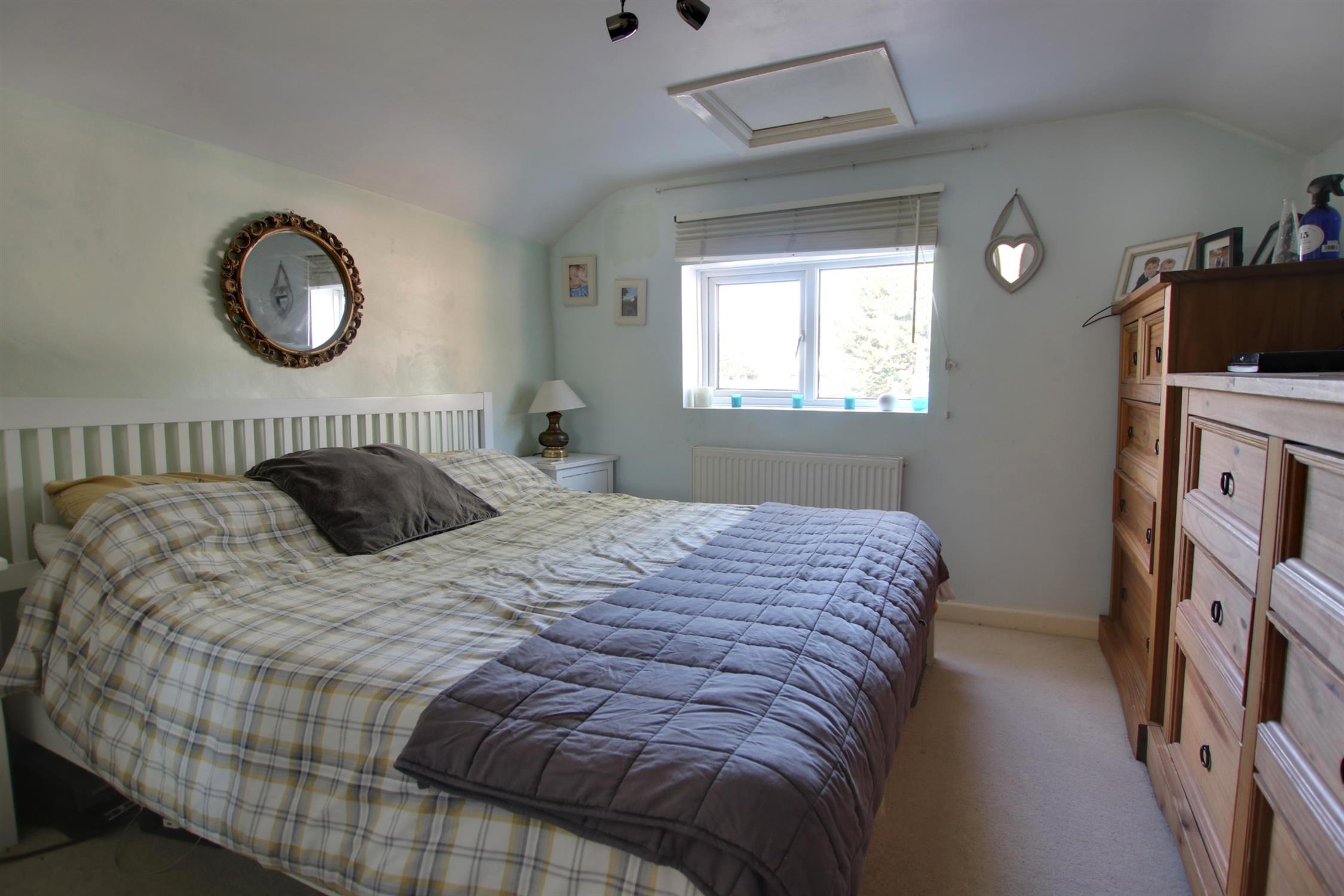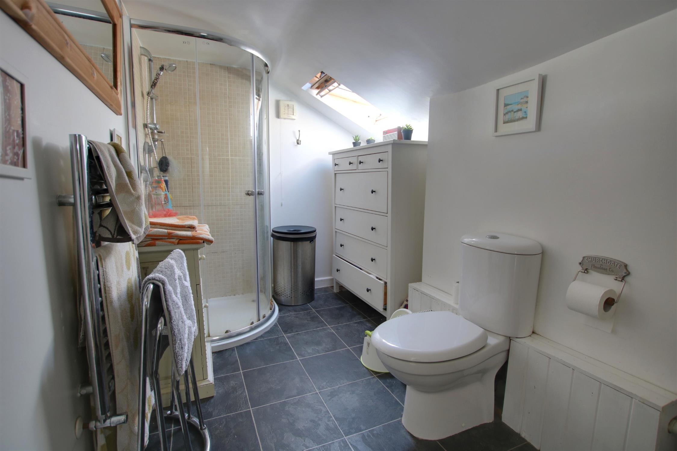 Double glazed velux window to rear aspect. Tiled shower cubicle, vanity wash basin with mixer tap and cupboard under and low level flush w.c. Heated towel rail. Laminate flooring.
