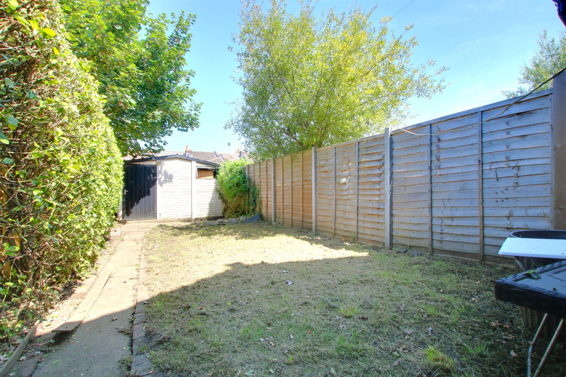 The rear garden is fully enclosed and is laid with lawn with borders. Paved path providing access to the garage. Garden shed.