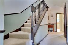 Accessed via glazed composite front door, stairs to first floor landing and upstairs cupboard. Door to: