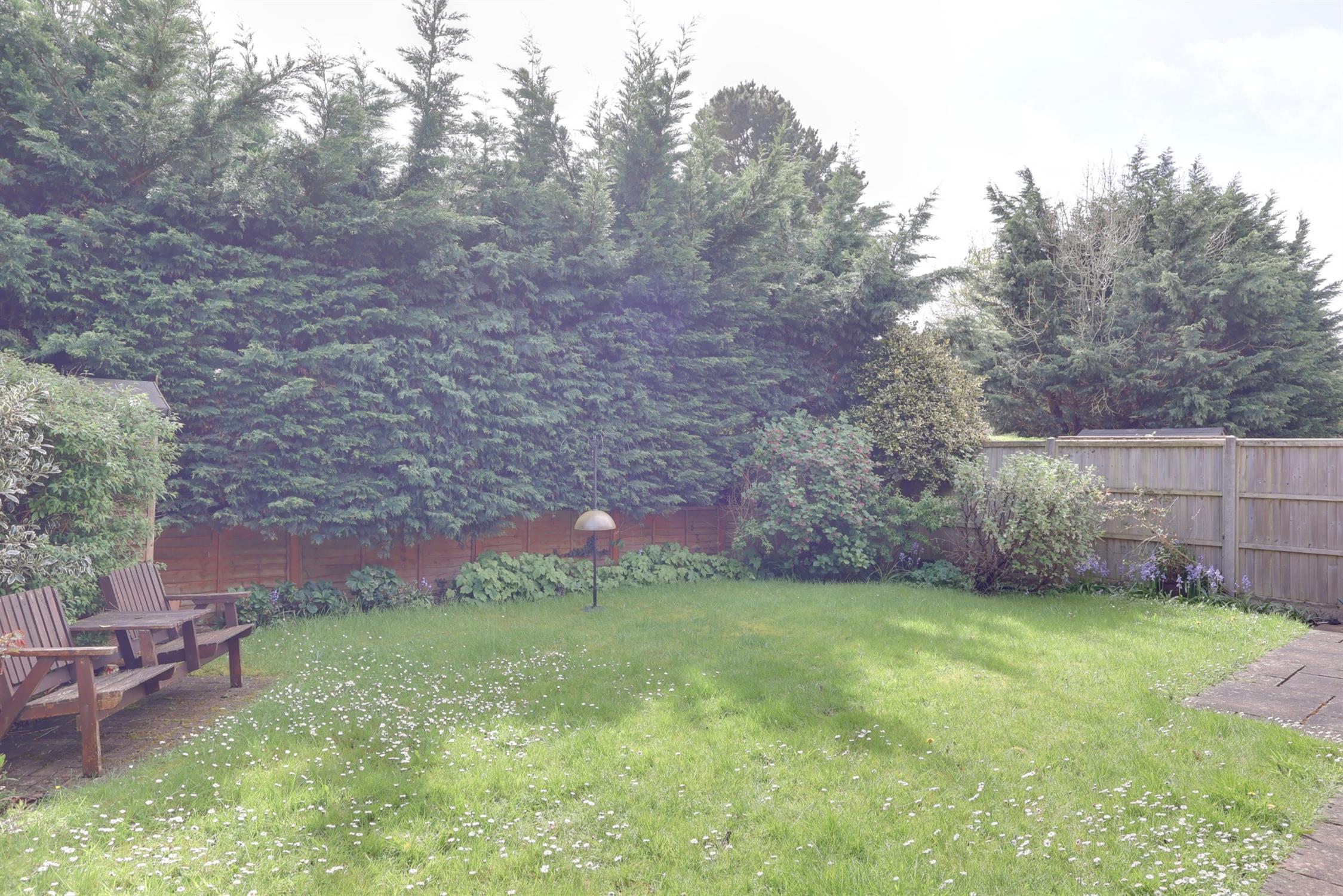 Hedge enclosed. Mainly laid to lawn, planted borders, paved patio area and side access.