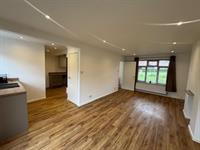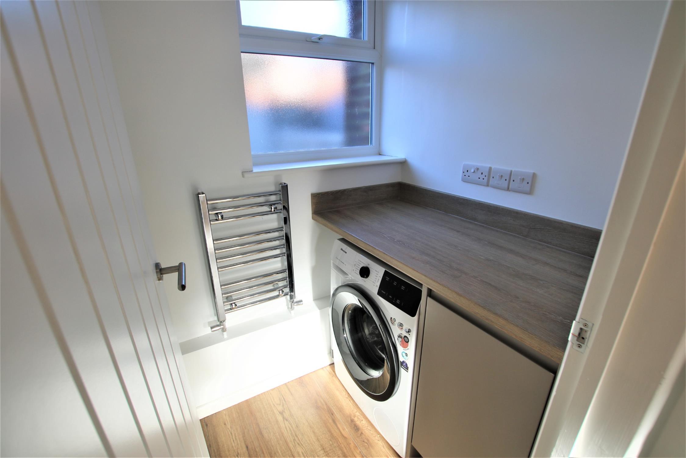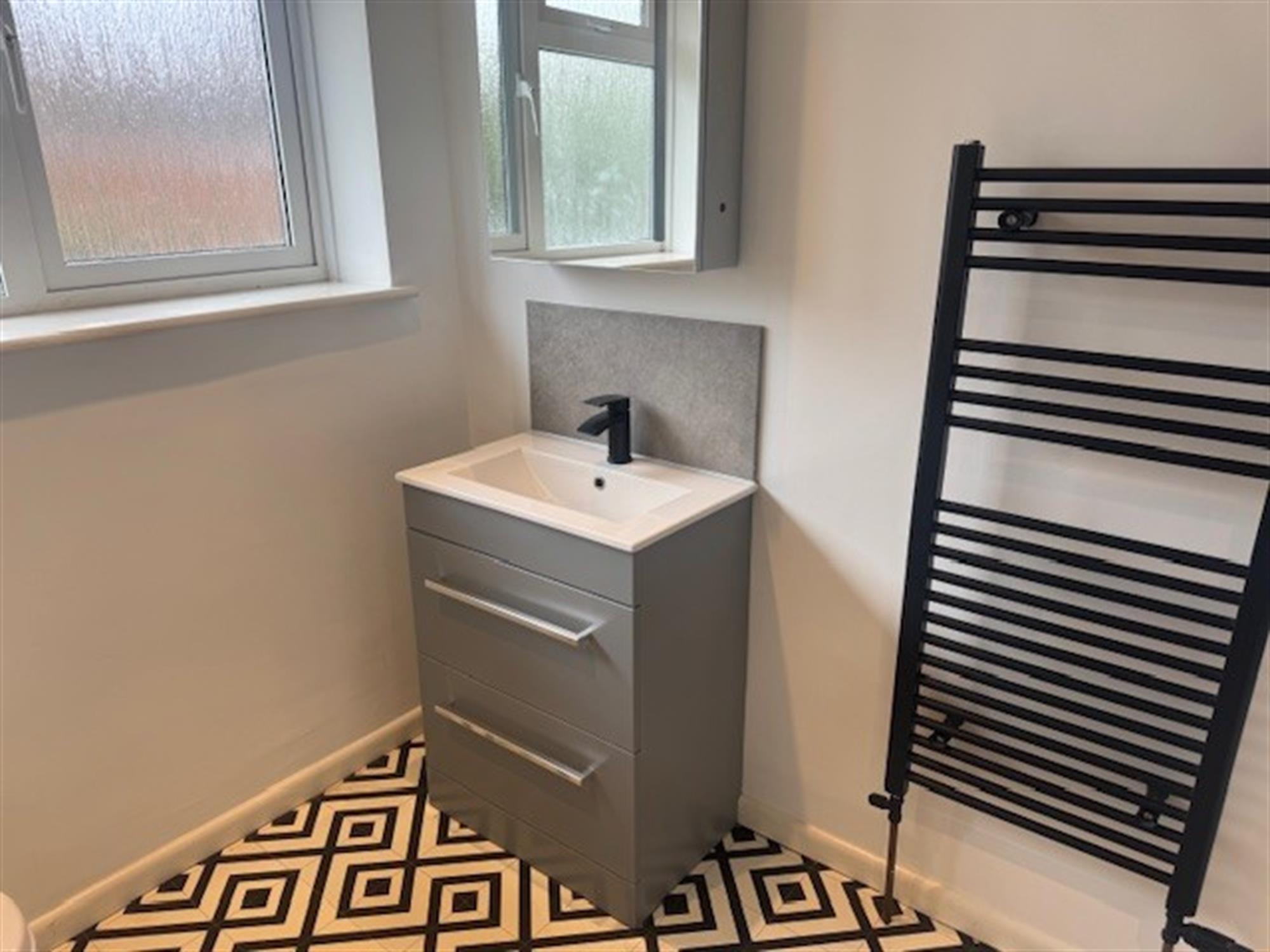 The entrance hall leads to a kitchen with all the white goods included and plenty of cupboards space.