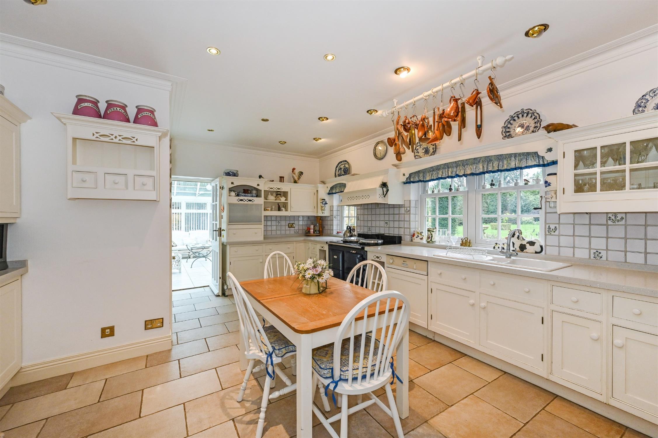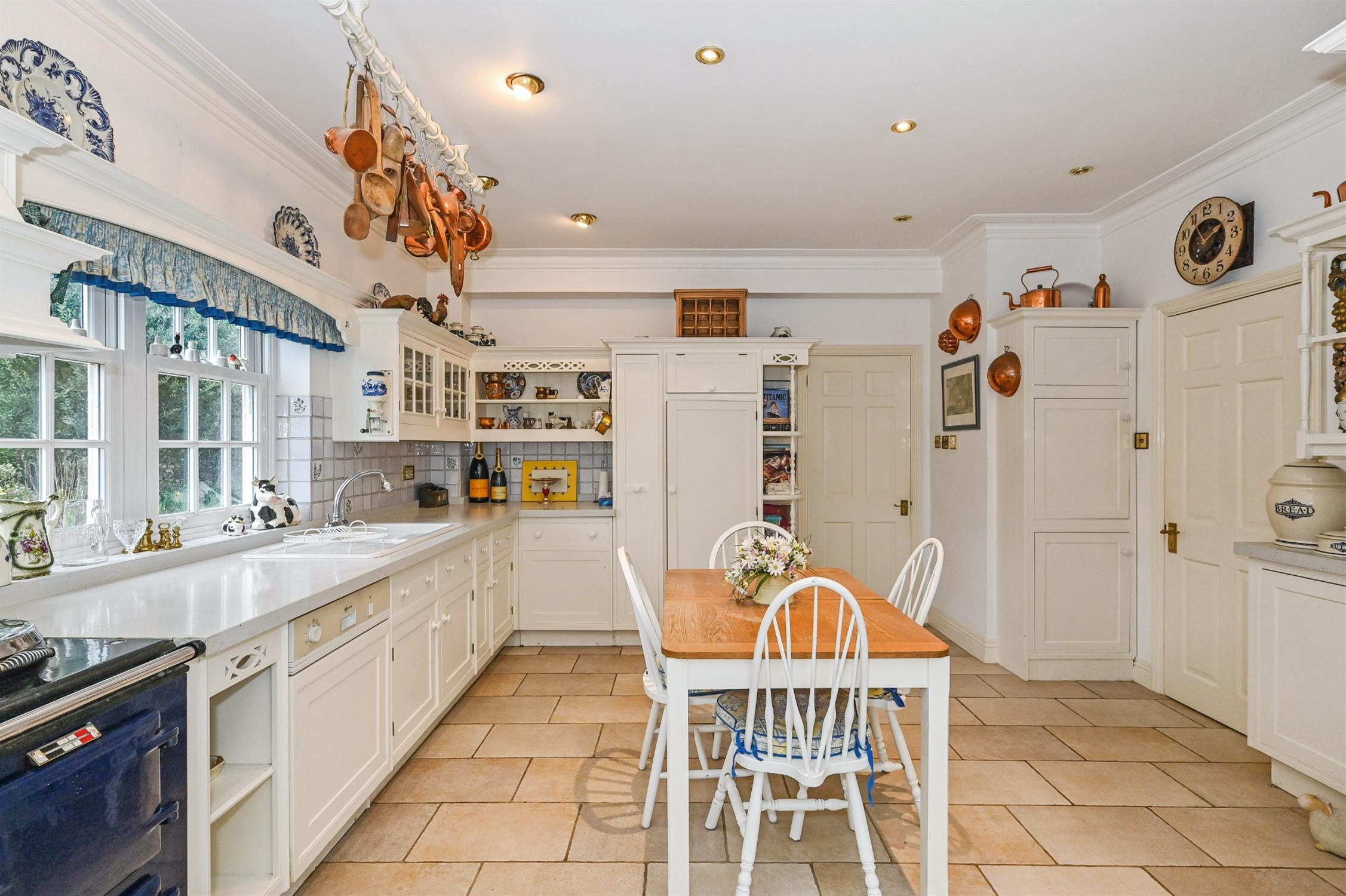 Superbly fitted with a bespoke range of units, complimented with display shelving and tiling. There is an electric Aga with extractor canopy over, along with space for an integrated dishwasher. Integrated fridge and sink unit. There is plenty of space for a breakfast table and chairs and there is a window to the rear aspect, overlooking the rear garden. Tiled floor and door leading to the garden room. Walk-in utility cupboard with shelving, space for washing machine.