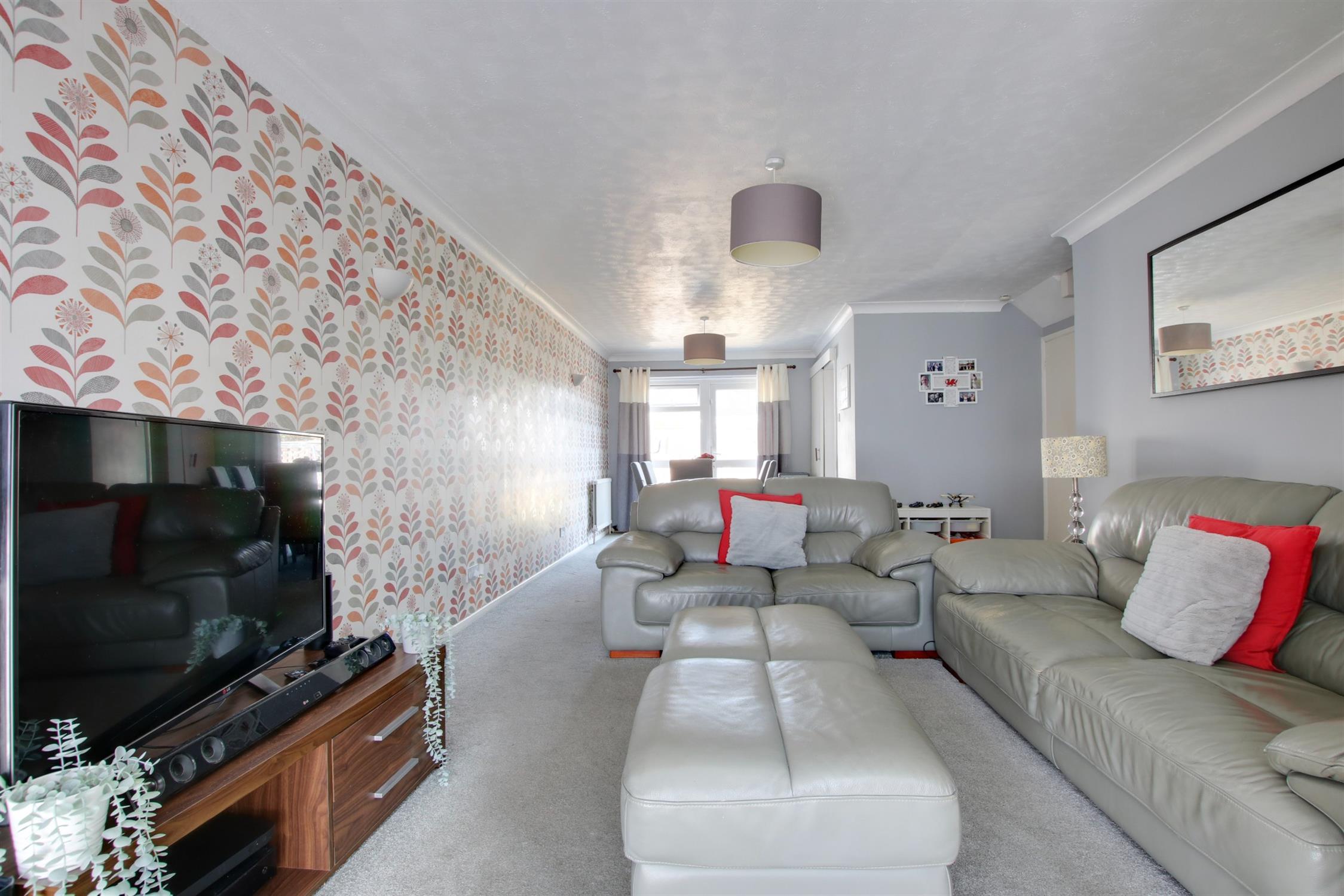 Dual aspect with double glazed picture window to front elevation and double glazed window and door to rear garden. Two radiators. Understairs storage cupboard. Coved and textured ceiling. Stairs to first floor. Sliding door to: