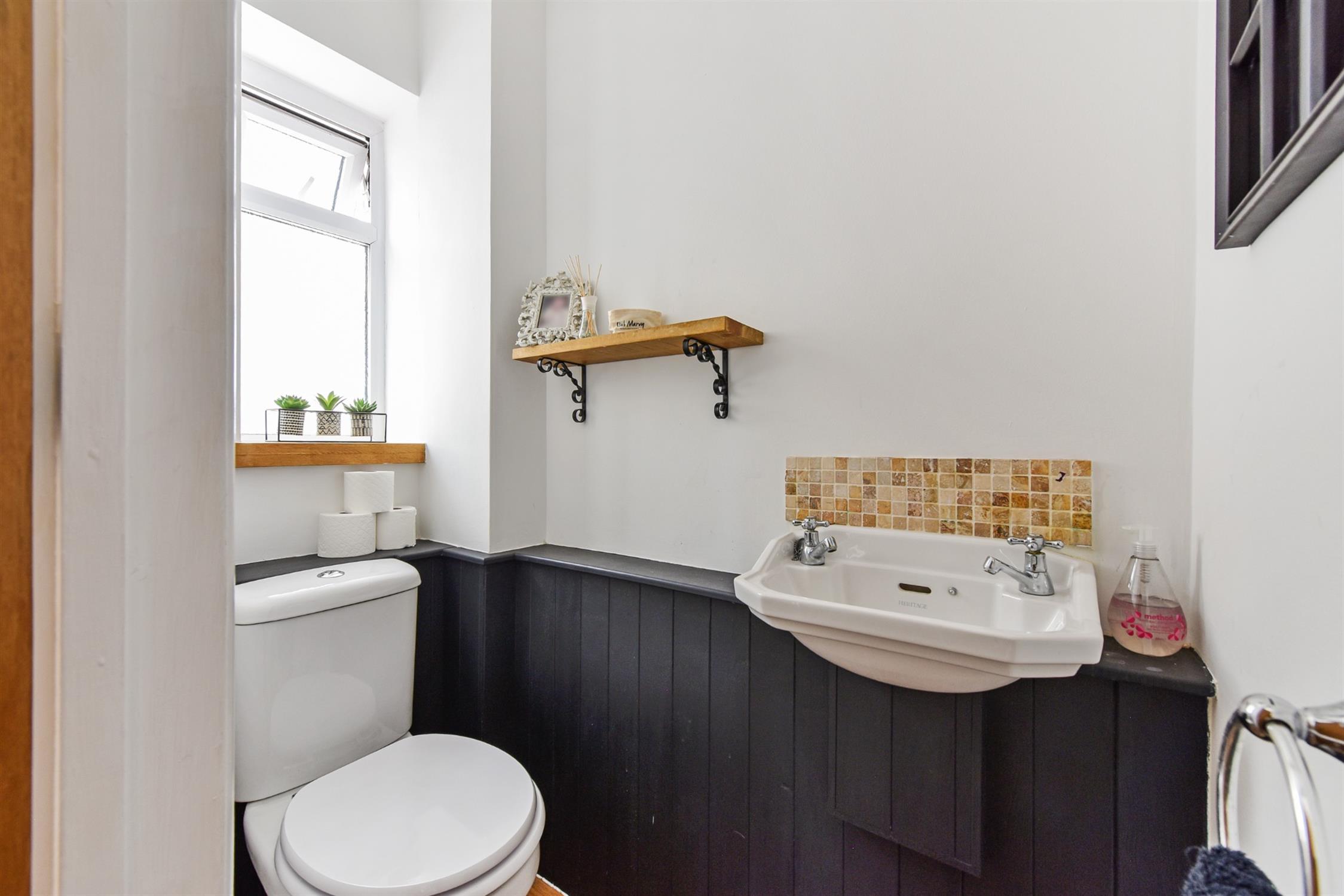 Double glazed window to the side aspect. Low level WC. Wash hand basin. Continuation of the flooring from the entrance hall.