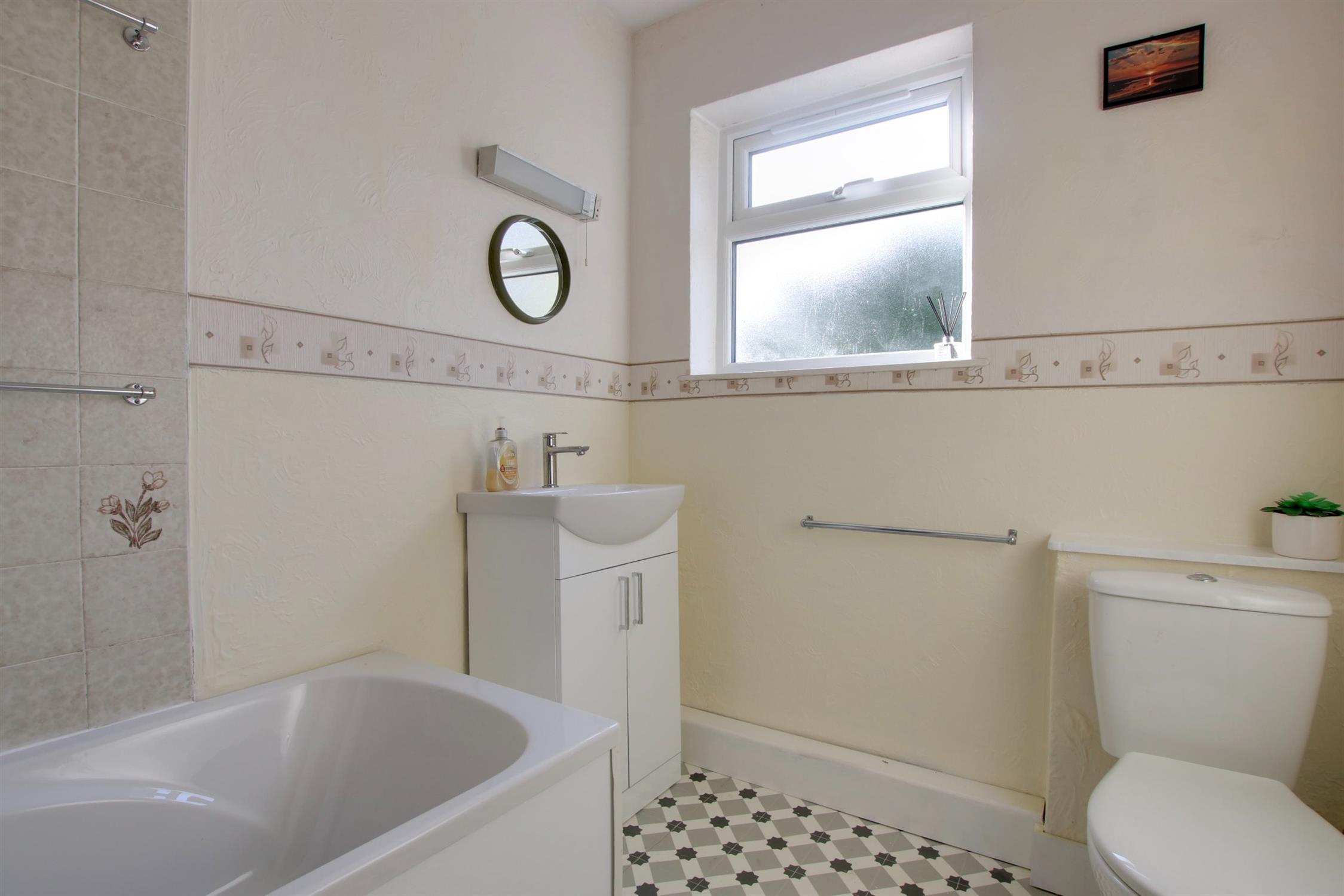 Double glazed window to rear elevation. Newly fitted bathroom comprising; panel enclosed bath with mixer taps and shower attachment over. Pedestal wash hand basin. Vanity unit with wash hand basin and storage beneath. Wall mounted heater. Electric shaver light.