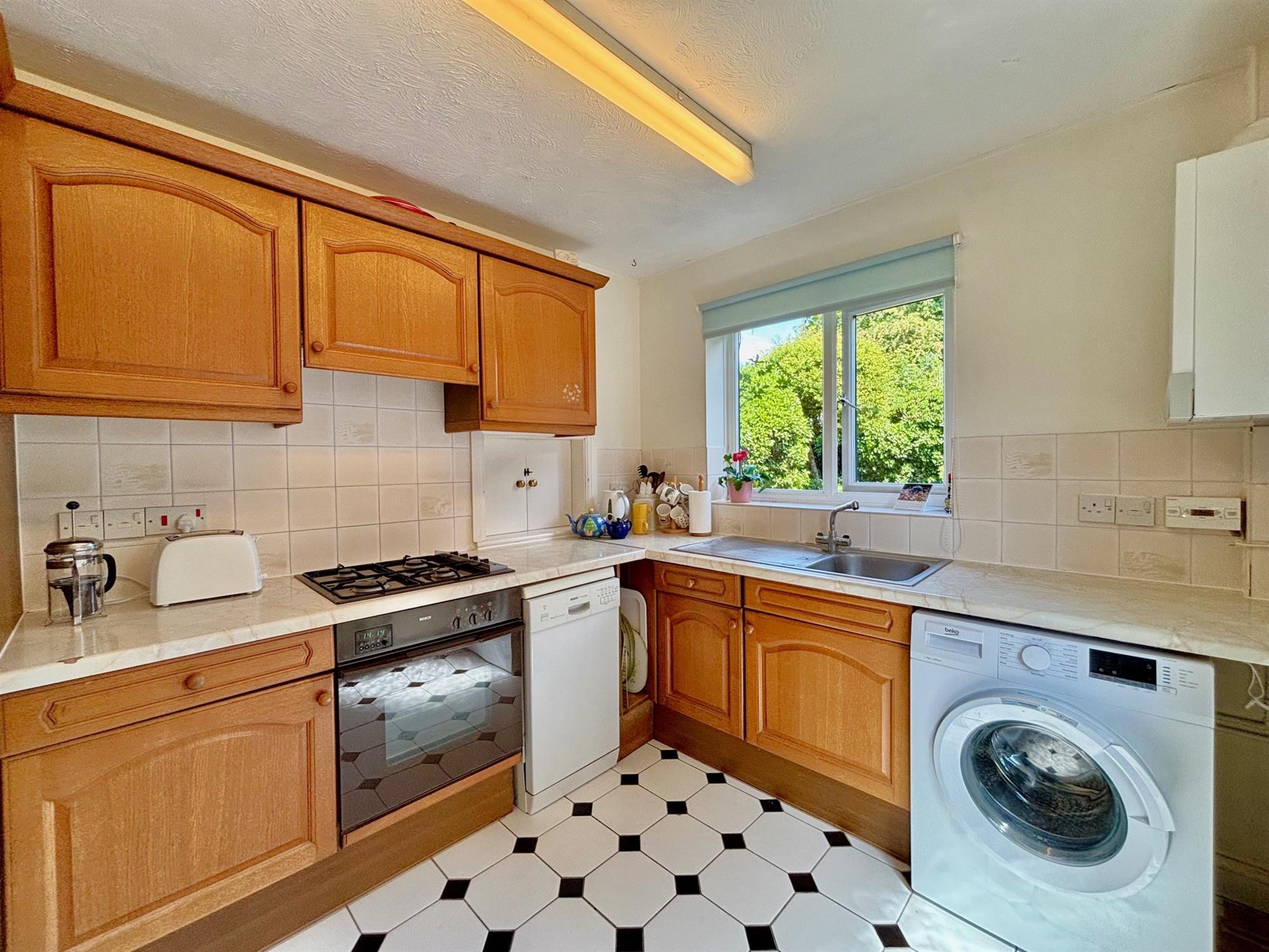 A good range of high and low level units with solid wood drawers and doors. Gas hob integrated oven. stainless steel sink.hatch to the dining room. boiler. Door to the driveway.