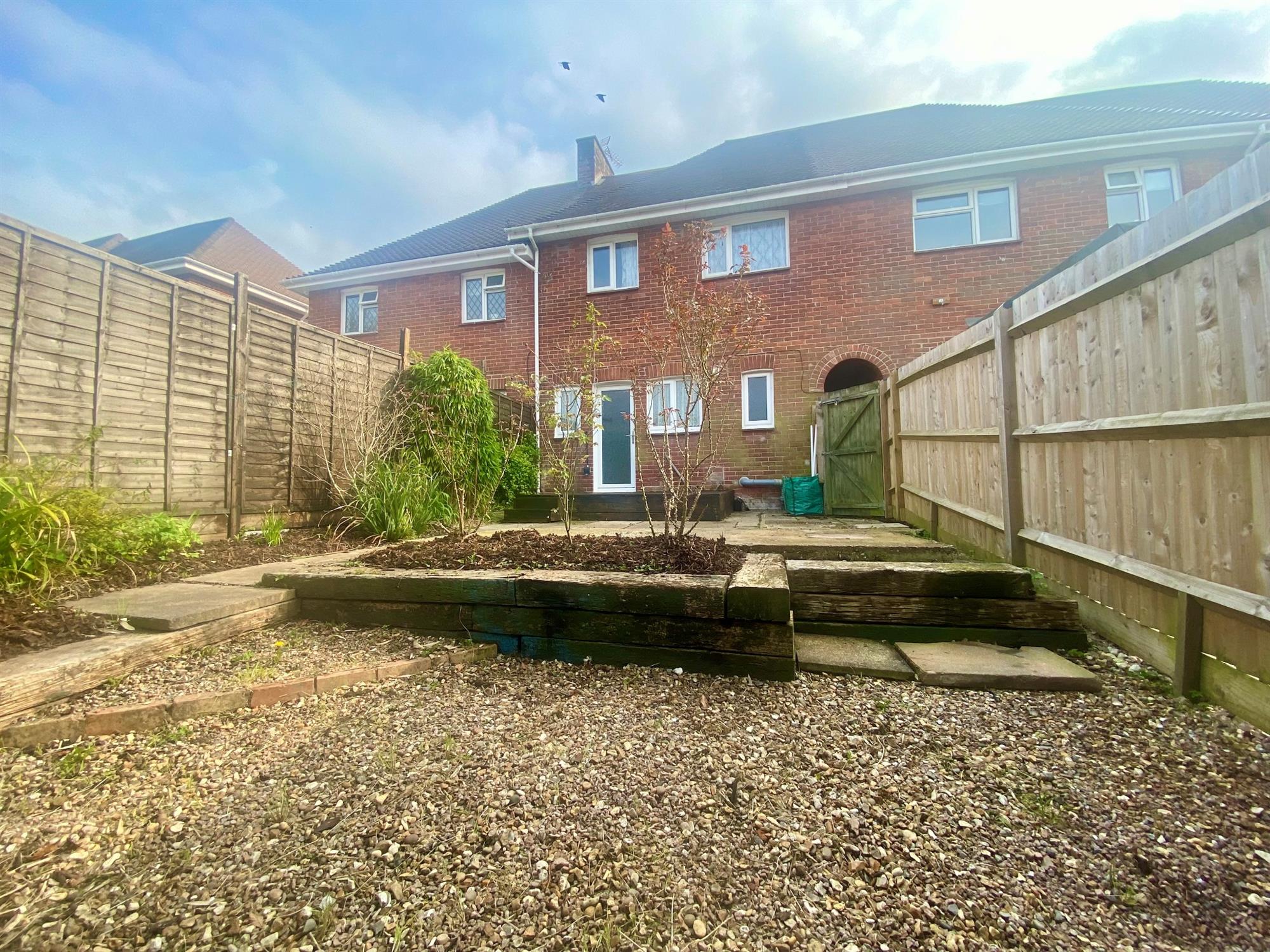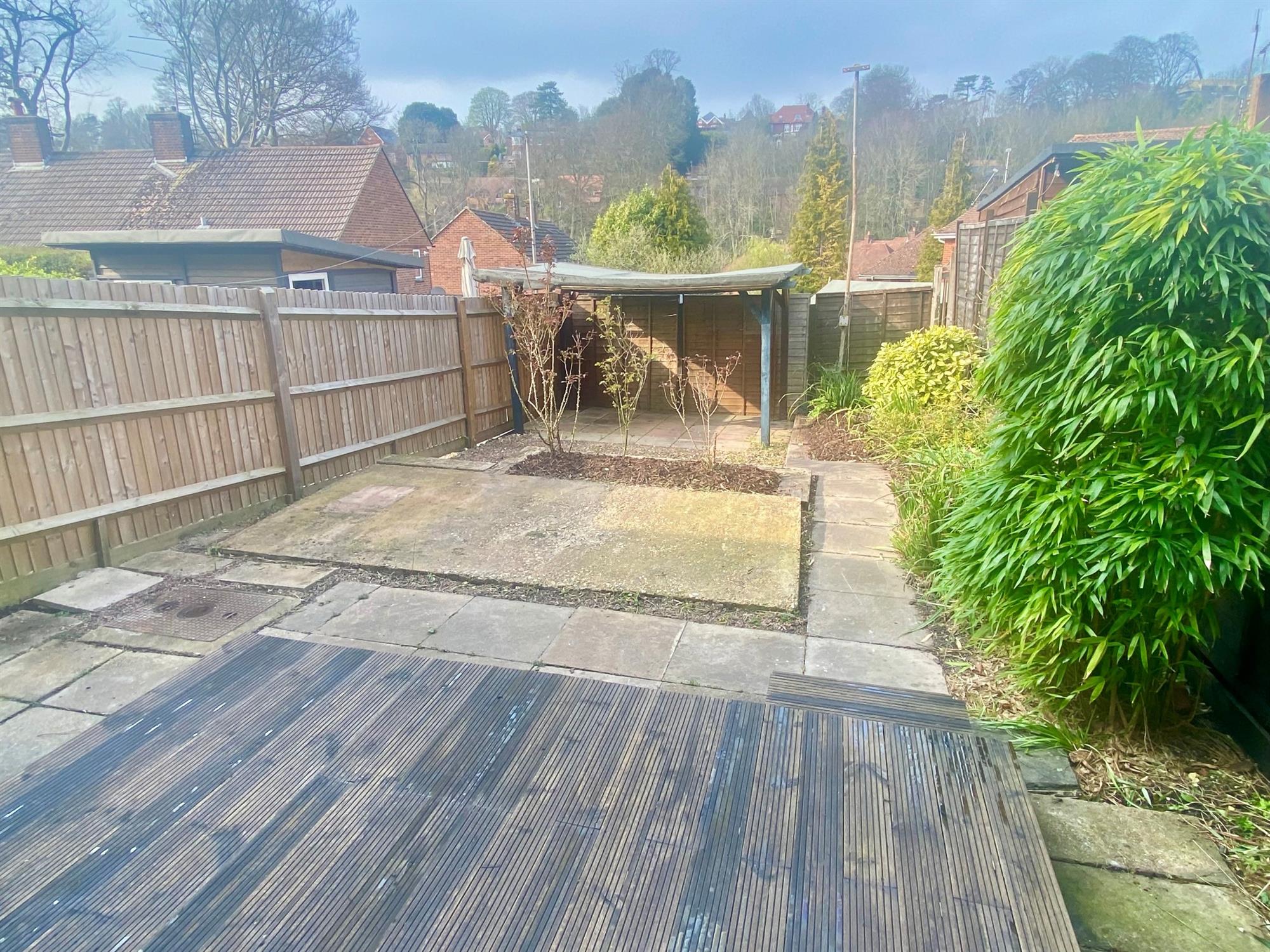 The enclosed rear garden can be accessed via the kitchen and also has side access. It is a tiered layout comprising of wooden decking, raised beds, and patio with awning. The driveway to the front of the property has space for two cars.