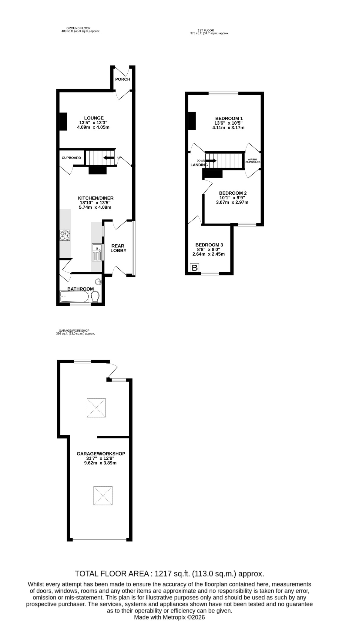 WORKSHOP: Door leading to the rear garden. Two windows to the rear aspect. Power and light.