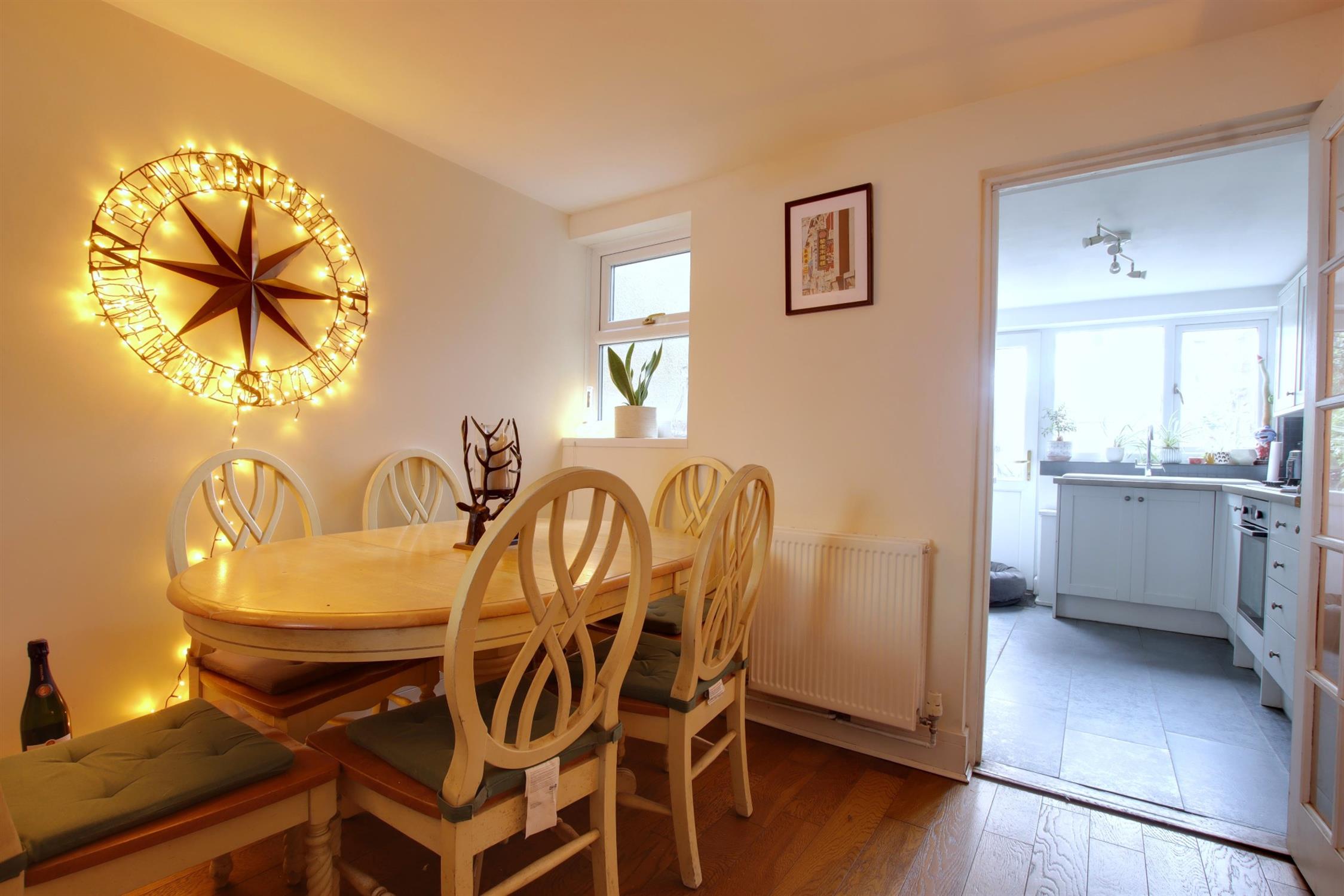 Double glazed window to rear and double glazed door to rear garden. Smooth ceiling. Matching wall and base units with inset sink and half drainer with contrasting worktops. Five ring gas hob. Integral oven/grill and further integrated appliances include; washing machine, slimline dishwasher and fridge/freezer. Radiator. Tile effect vinyl floor.