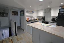 KITCHEN/ BREAKFAST ROOM: Modern fitted units with oven, hob and extractor hood with spaces for washing machine & fridge/freezer.