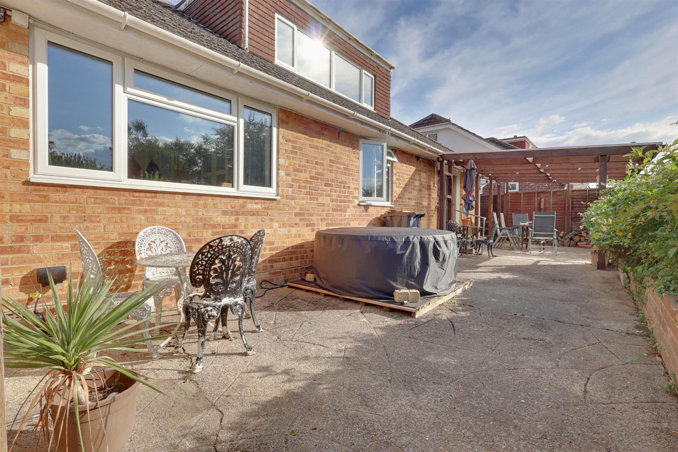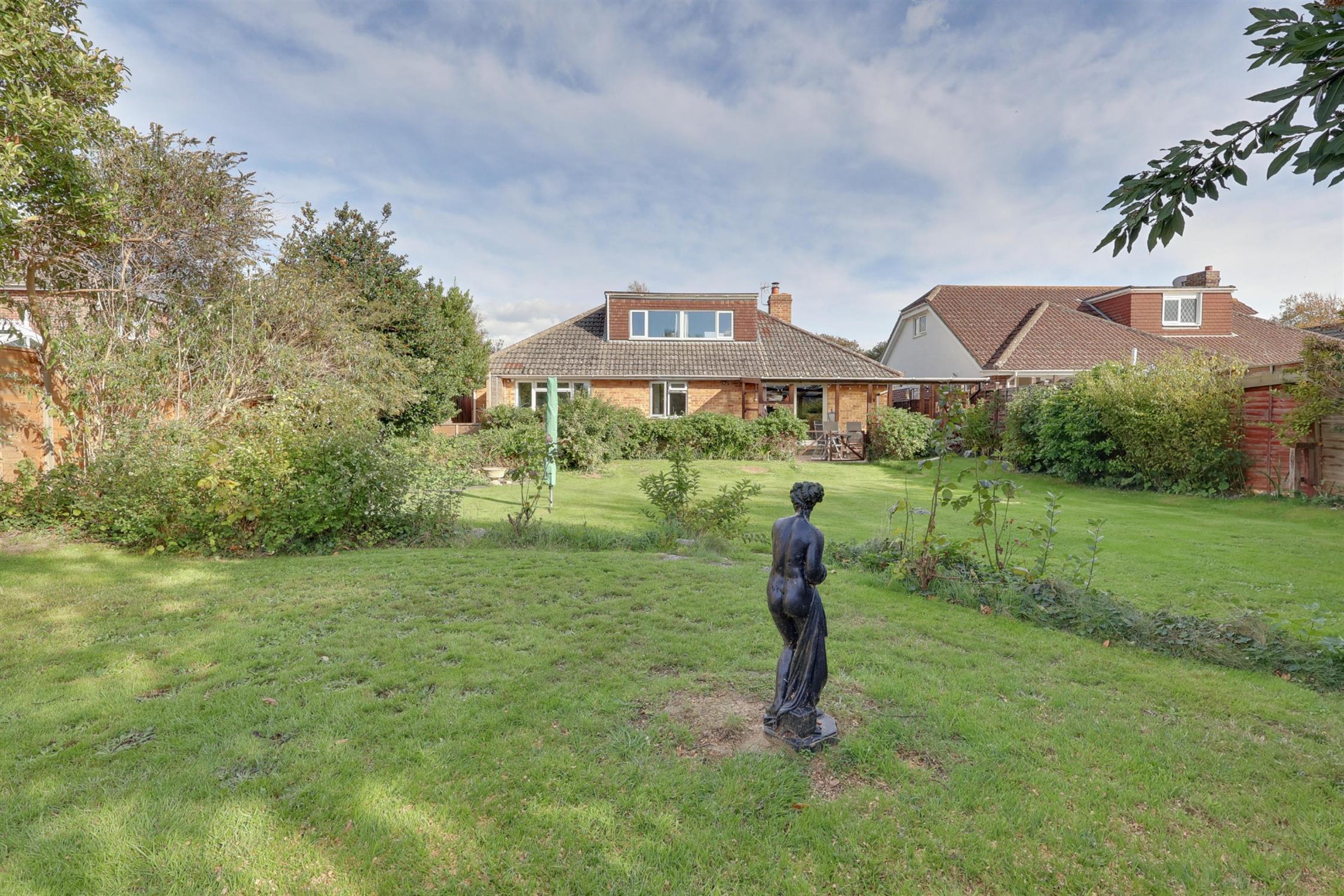 A three bedroom, detached chalet bungalow that enjoys a generous, west facing rear garden. The property is located on Green Lane, which is within easy walking distance to Hayling Island's shoreline, which is famous for its award winning beaches and excellent range of local amenities. To the front of the property is a large driveway which provides parking for many vehicles. The spacious entrance hall provides access into the kitchen/breakfast room which features a modern fitted boiler. The sitting/dining room provides a multi-fuel burning stove and sliding doors opening into the rear garden.
