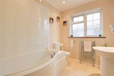 Double glazed window to side elevation. Low level close coupled WC. Pedestal wash hand basin. Splashback tiling. Tiled flooring. Radiator. Coved and skimmed ceiling.
