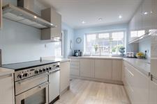 Double glazed window to rear elevation and double glazed door to garden. Kitchen comprising; white single drainer sink unit with cupboard under. Further range of wall and base level units with matching work surfaces over. Rangemaster oven to remain with cooker hood over. Built-in and concealed fridge/freezer and dishwasher. Laminate flooring. Radiator. Coved and skimmed ceiling. Inset ceiling spotlights.