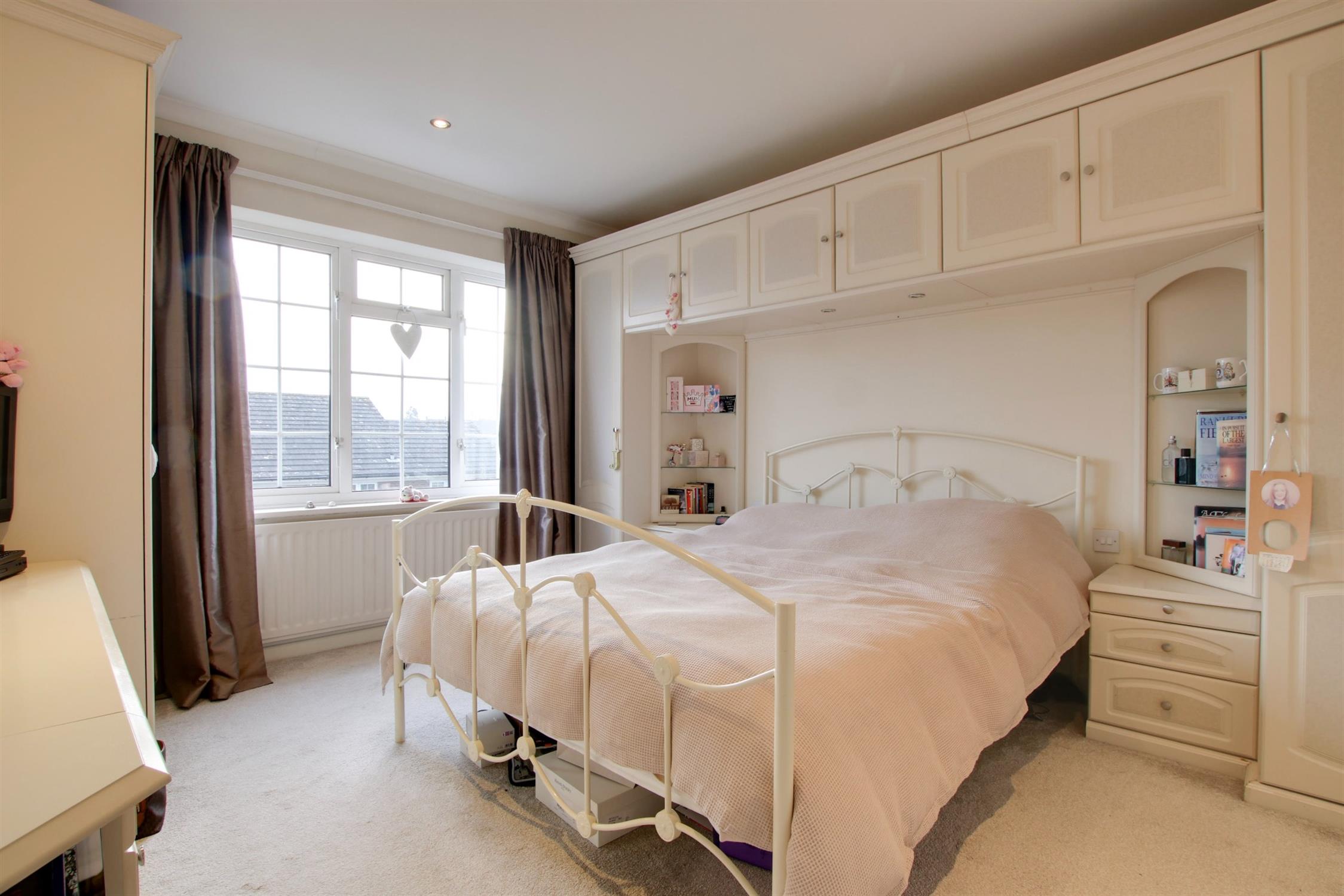 Double glazed window to rear elevation. Built-in bedroom furniture including; wardrobes, chest of drawers, bedside cabinets and overbed storage. Coved and skimmed ceiling. Radiator. Inset ceiling spotlights.