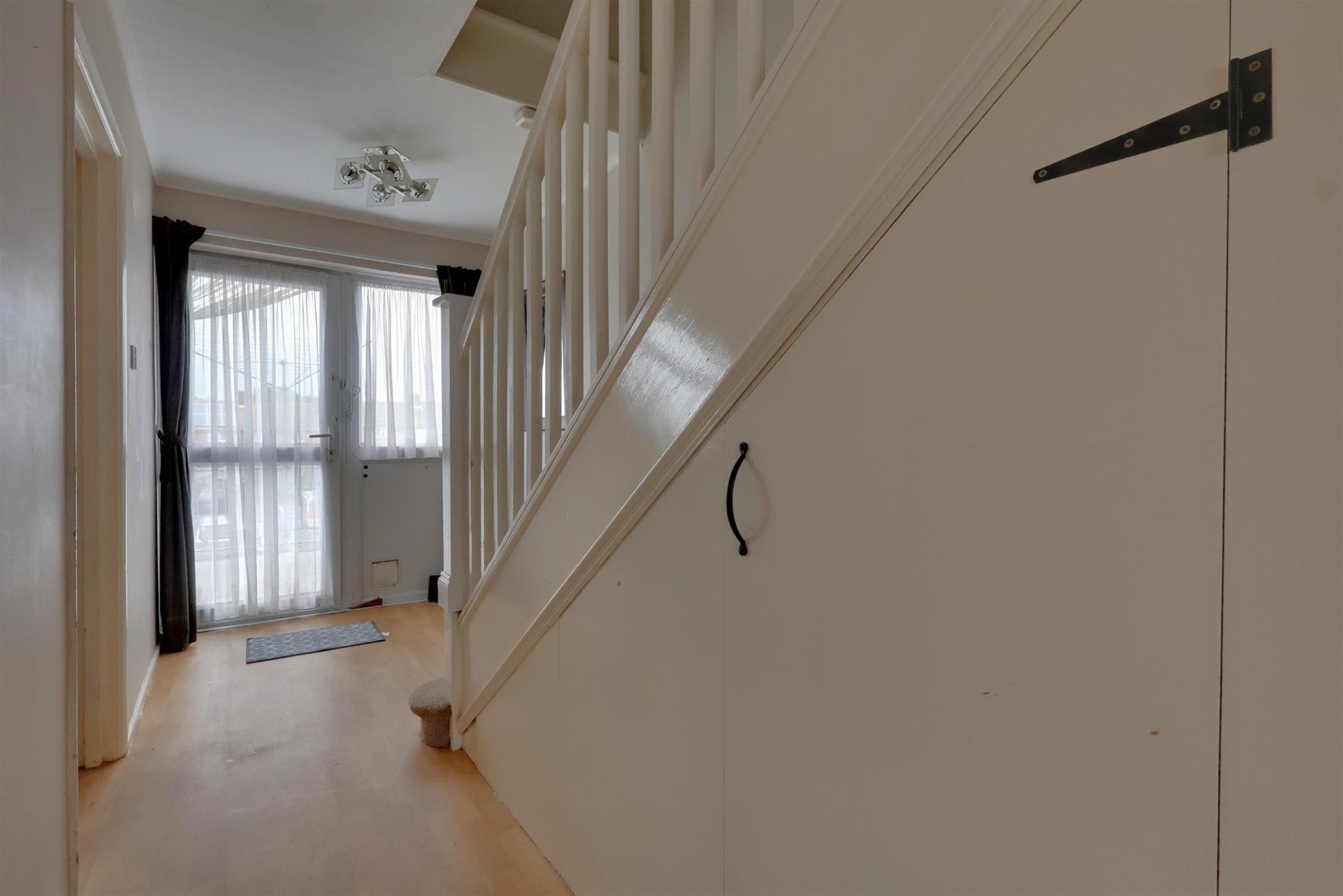 Double glazed front door, the entrance hall features a double-glazed window to the front elevation, stairs rising to the first-floor accommodation, doors to ground floor rooms, laminate flooring, and an under stairs cupboard housing the meters and fuse box.