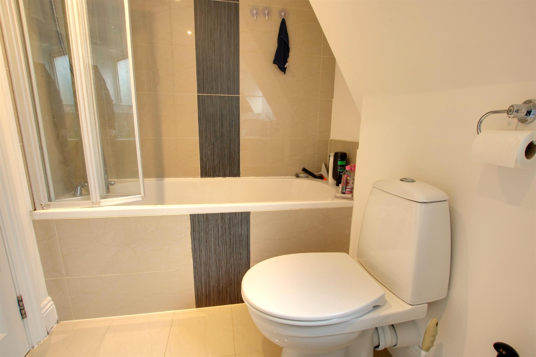 Panelled bath, w.c. and ceramic wash basin. Tiled flooring. Part tiled walls. Double glazed window. Extractor fan. Radiator.