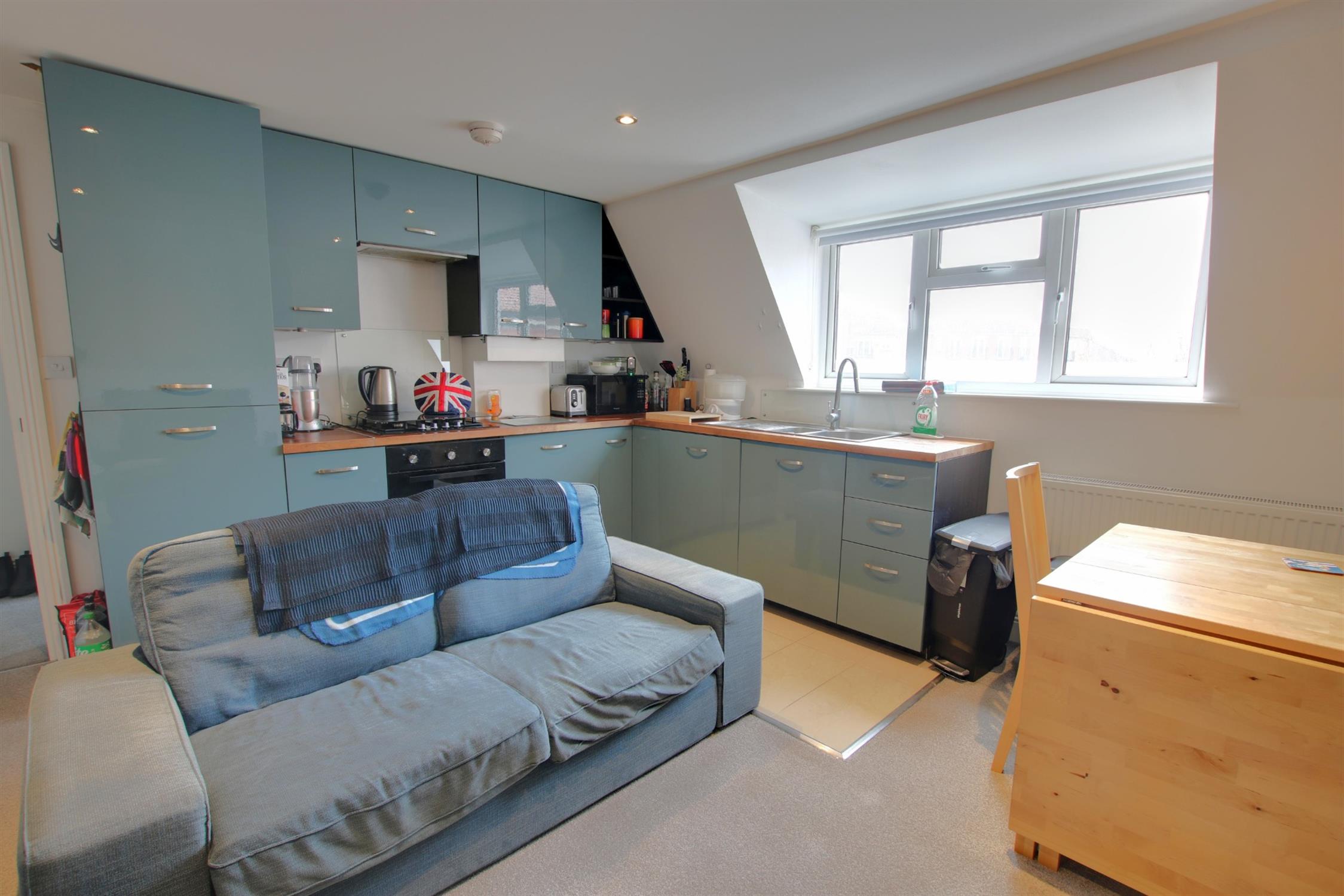A range of modern high gloss wall and base units with work surfaces over. built in dishwasher, washing machine and fridge freezer. One and a half bowl sink with drainer, gas hob and electric oven with extractor hood. Combination boiler. Double glazed window. Tiled flooring to kitchen area and Carpet to living. Radiator. Smooth walls and ceiling with recessed spotlighting.