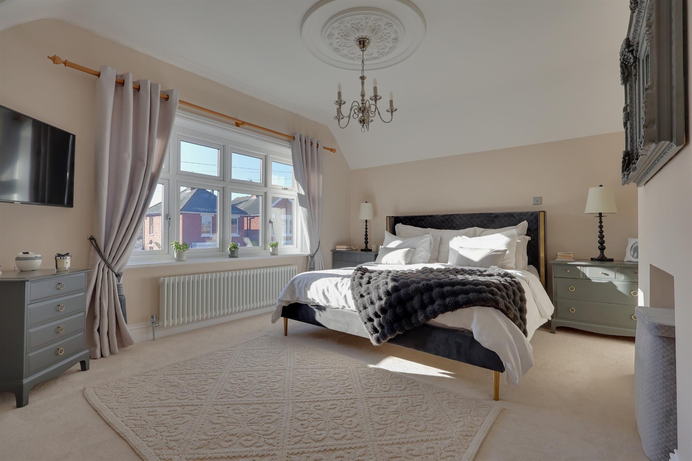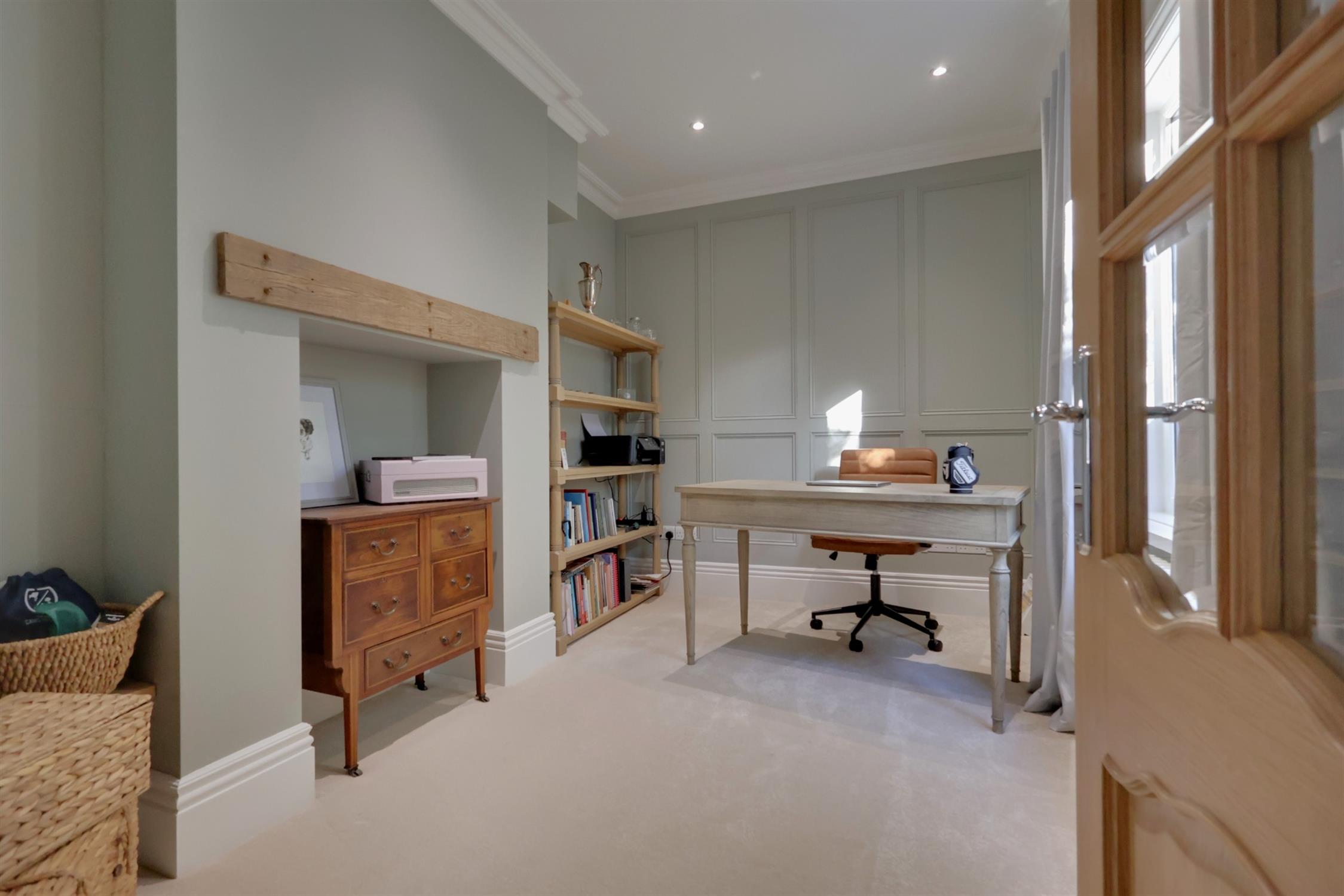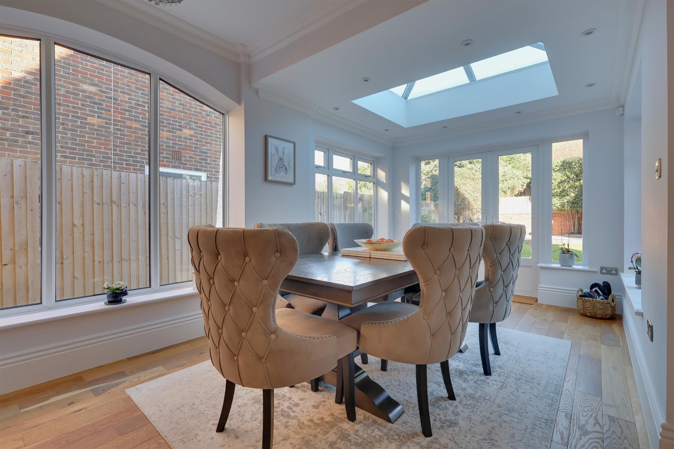A detached family home of character and distinction, that is situated on a highly sought after road. The property enjoys a perfect blend of period features and modern contemporary accommodation. The current owner has finished the property to an exacting specification that includes a bespoke fitted kitchen, solid hardwood flooring, an Italian inspired coffered kitchen ceiling and marble flooring within the en-suite. A spacious and welcoming entrance hall with engineered wooden flooring, provides access to the sitting room, which provides a wood burning stove and attractive bay window.