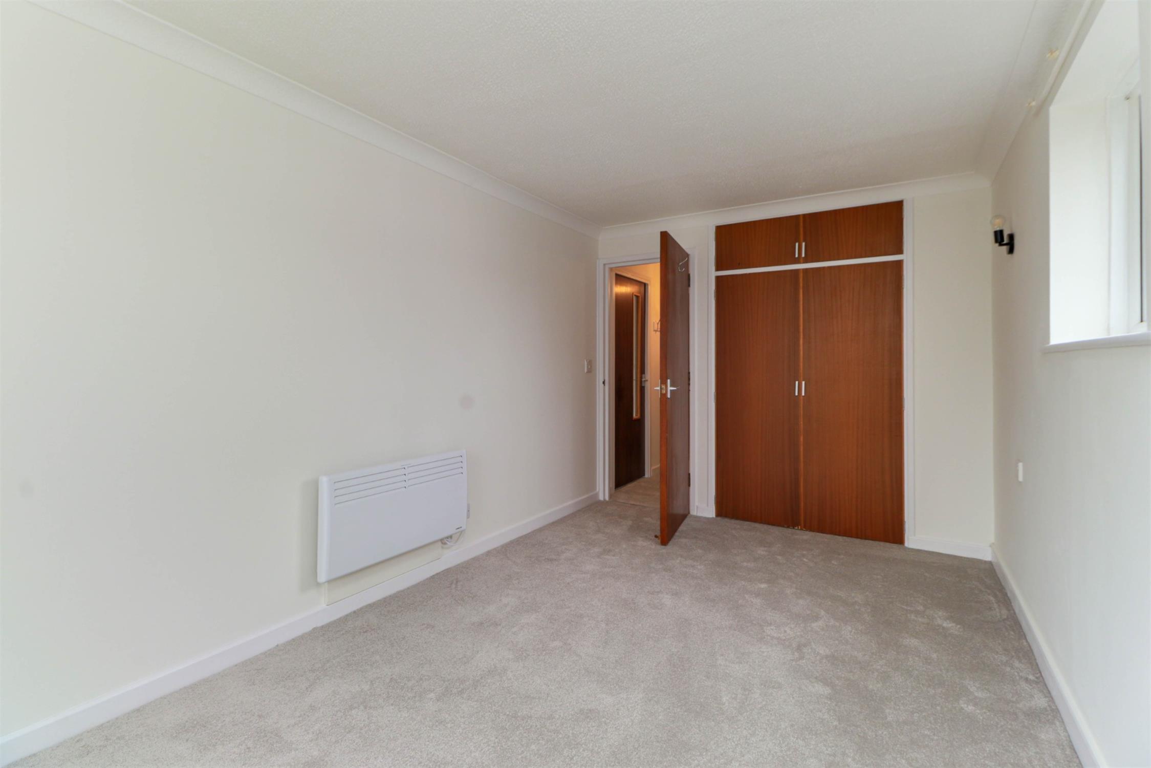 Textured and coved ceiling, two double-glazed windows, dual aspects, built-in wardrobe, electric wall heater, fitted carpet.