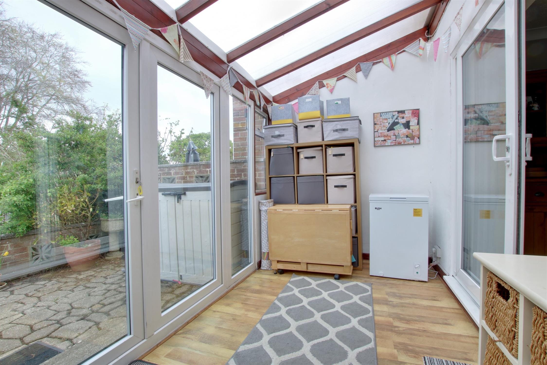 Double glazed windows and French doors opening onto the rear garden. Wood effect flooring. Built-in utility cupboard with space and plumbing for washing machine.