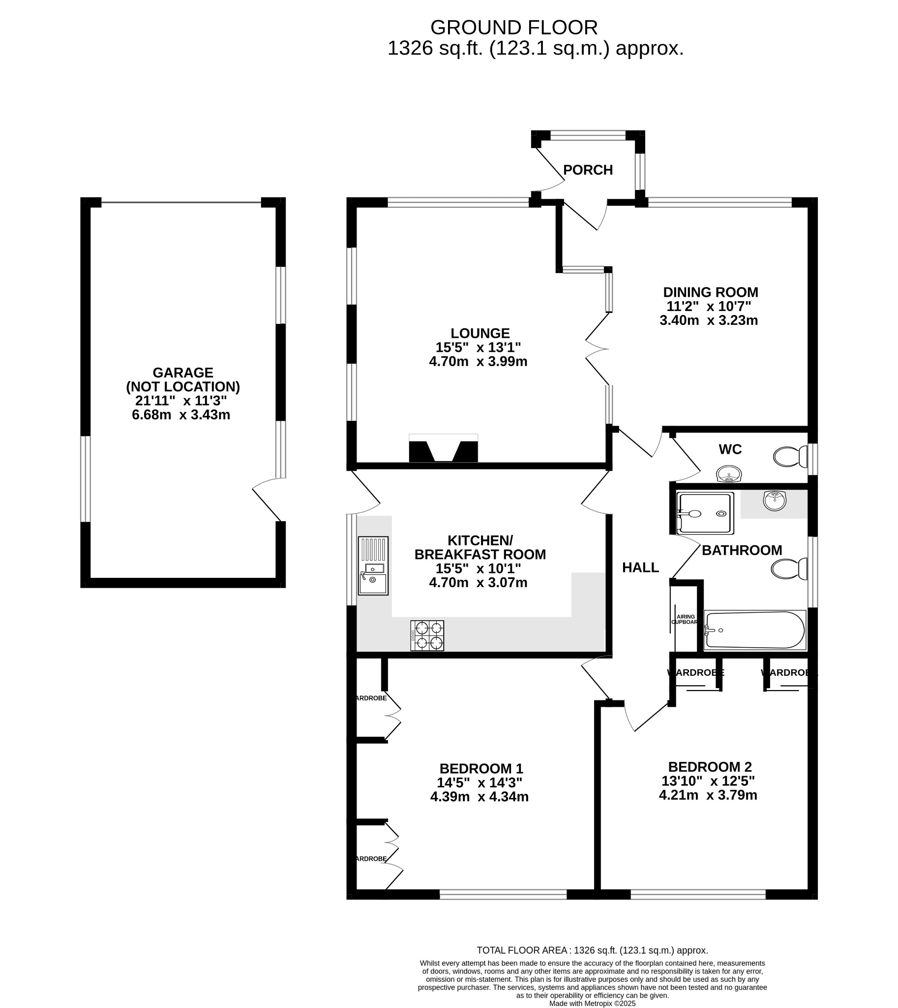 DESCRIPTIONNO FORWARD CHAIN. This extended two bedroom individual detached bungalow occupies a generous plot located in a non-estate position within easy reach of Fareham's mainline railway station. The well-designed internal accommodation comprises; porch, dining room, 15' lounge, hallway, cloakroom, 15' kitchen/breakfast room, four piece suite bathroom and two double bedrooms. Externally, the bungalow benefits from its own driveway parking. Double gates lead to additional parking suitable for a boat/caravan/motorhome etc., as well as access to the DETACHED GARAGE (11'3 x 22'11) and an enclosed rear garden.