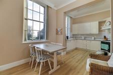 Smooth and coved ceiling, two sash windows with views over the Solent, a range of wall and base mounted units with roll top work surfaces over with inset sink and drainer. Integrated electric oven and gas hob with extractor fan over. Integrated dishwasher, integrated under counter fridge and integrated under counter freezer. Wood effect flooring and two radiators.