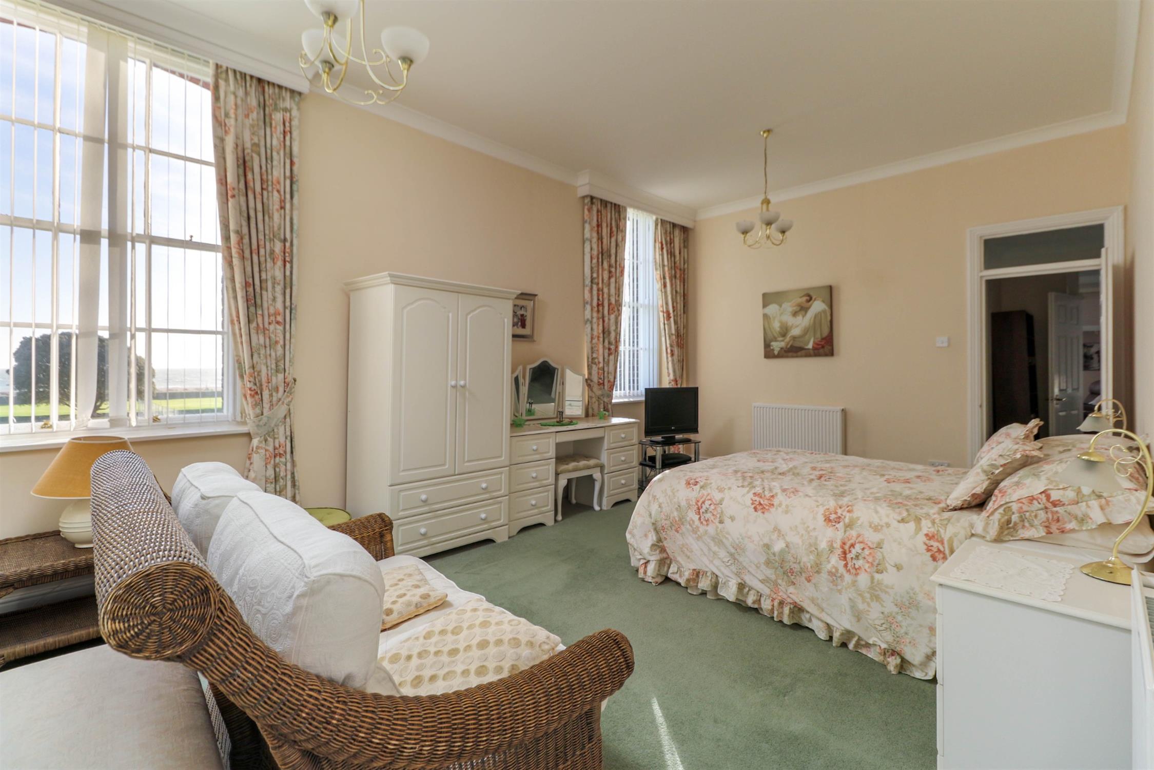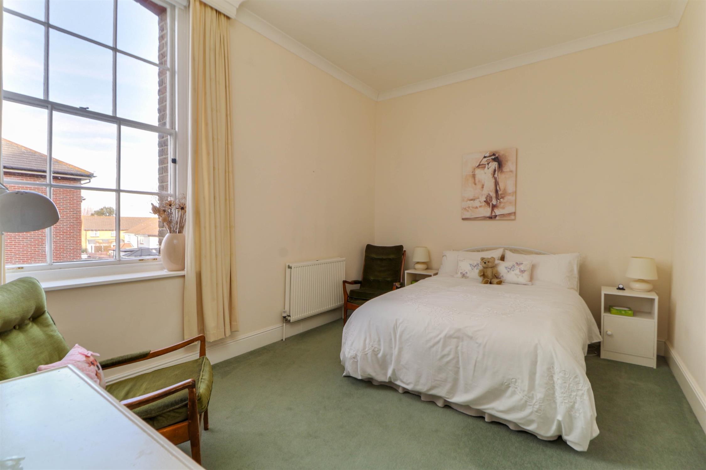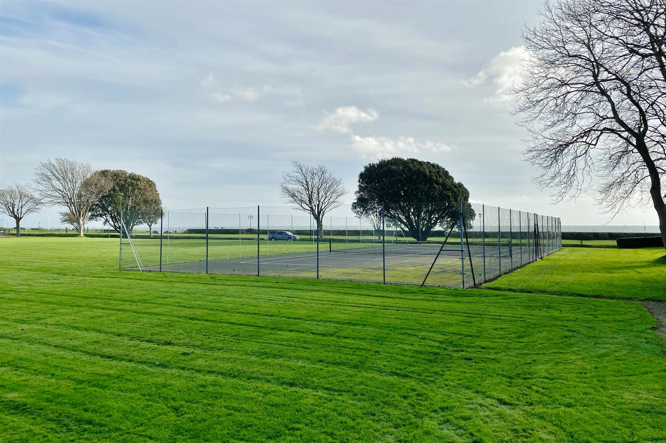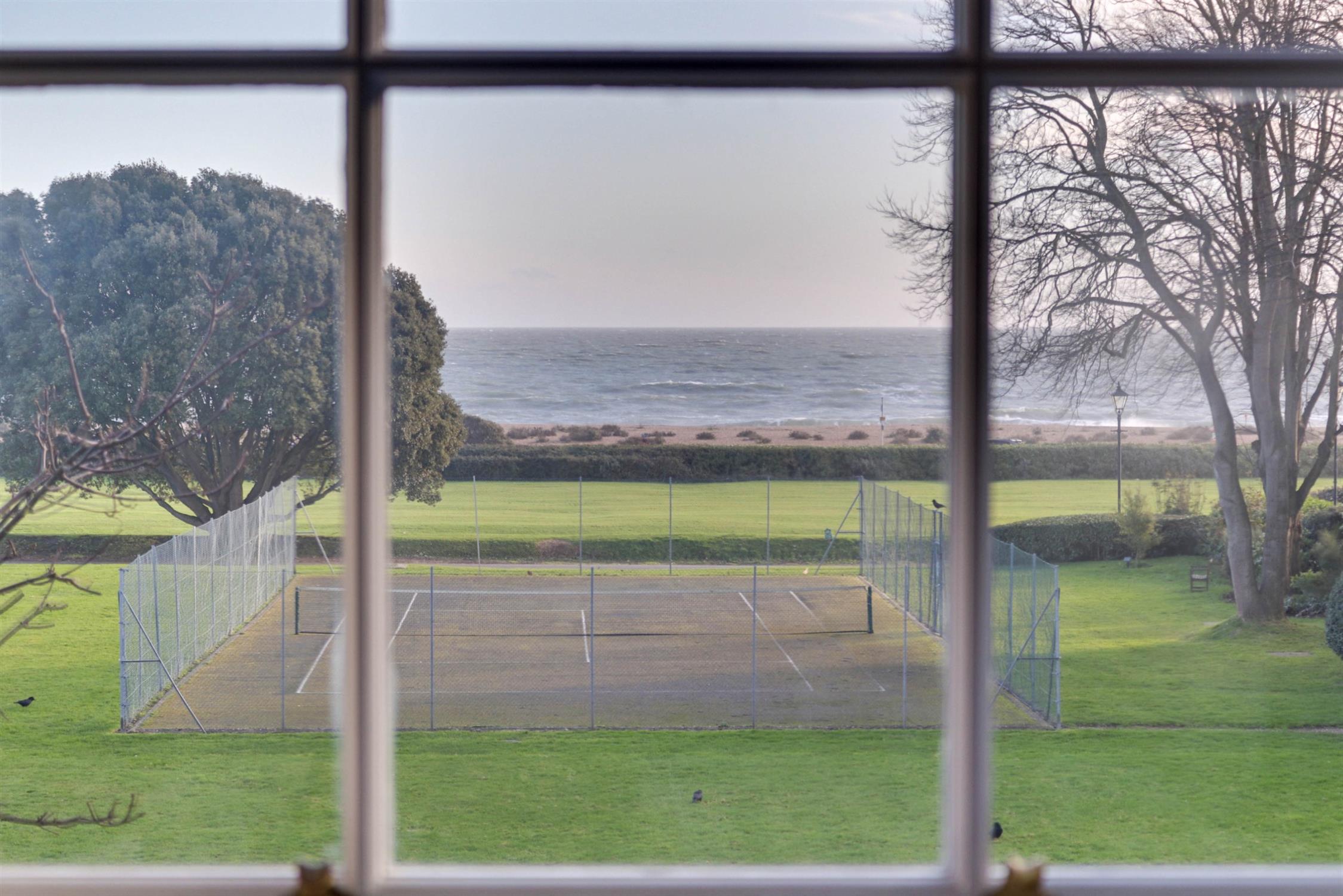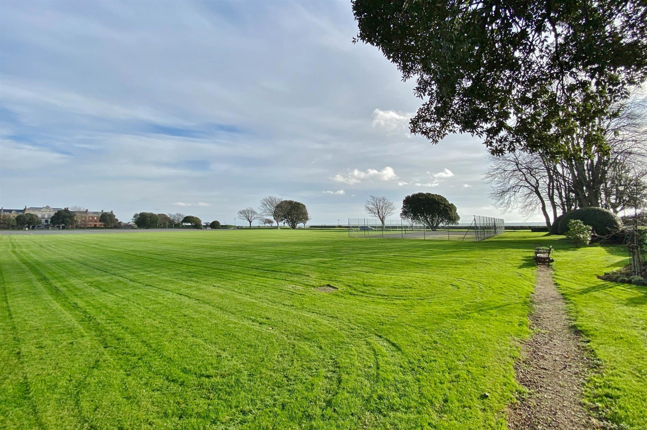 Large windows frame delightful views across the manicured communal lawns, open spaces and tennis court, creating a light and airy atmosphere throughout. The internal accommodation is both spacious and well arranged, comprising a superb drawing room with arched opening to a separate dining room, a fitted kitchen, utility/cloakroom, a principal bedroom with en-suite bathroom, two further well-proportioned double bedrooms and a separate family bathroom. The property further benefits from a garage in a nearby block, ample residents and visitor parking bays, and enjoys access to the immaculately landscaped communal grounds and residents’ tennis court. A rare opportunity to acquire a substantial apartment within one of Southsea’s most distinctive and historic developments.