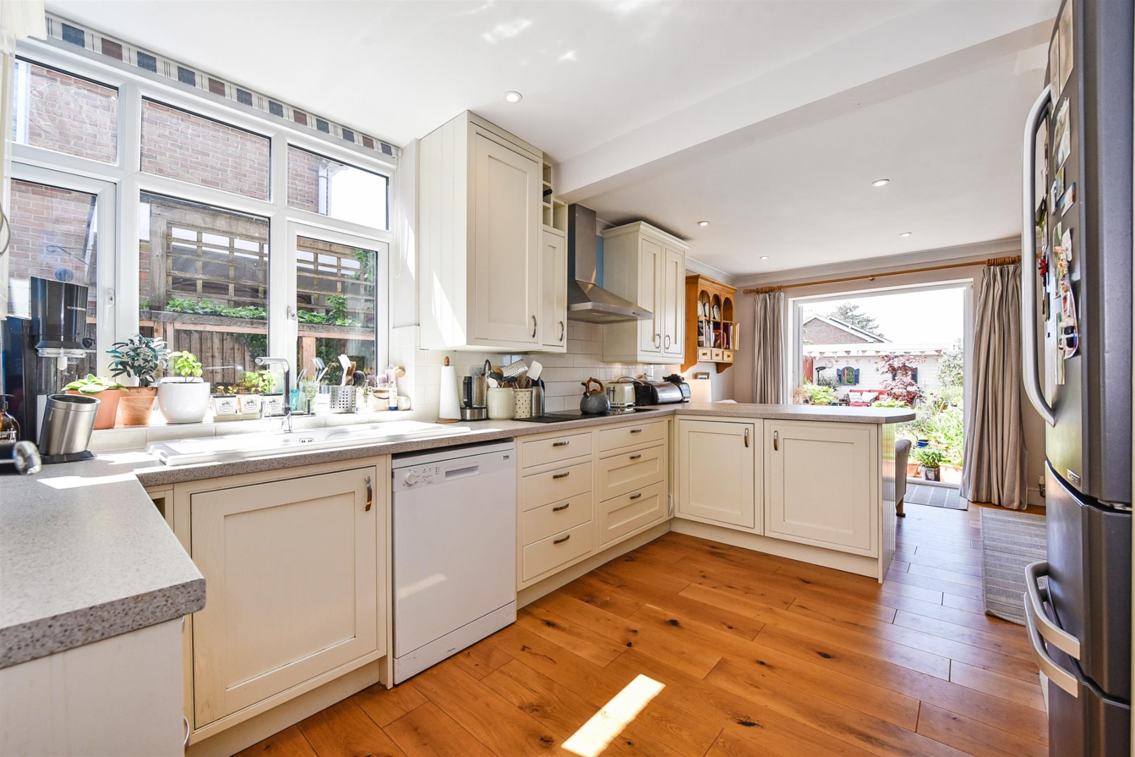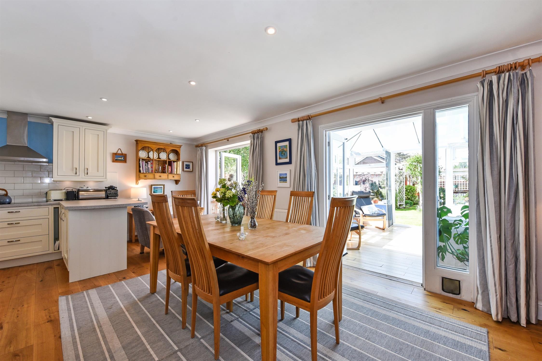 The entrance hall with its engineered wood flooring provides a warm welcome into this outstanding home, adjoining which is a very useful and practical utility/cloakroom with WC and space for washing machine and tumble dryer. The sitting room, originally two rooms, is now a large but cosy room featuring a curved bay window to the front, original stripped floorboards, and a fireplace with inset multi fuel stove as a warming focal point. Double doors open into the kitchen/dining room which is a wonderful space for the modern family, featuring engineered wood flooring and a stylish kitchen beautifully refitted in 2020 with a stylish collection of wall and base units, and a range of integrated appliances to include an induction hob, pyrolytic electric oven and freezer, with additional space for dishwasher and fridge/freezer; a cupboard houses the central heating boiler (serviced in March 2025). Double doors from the kitchen open into the garden with separate doors opening into the conservatory with oak flooring and which itself, in turn, also opens into the garden.