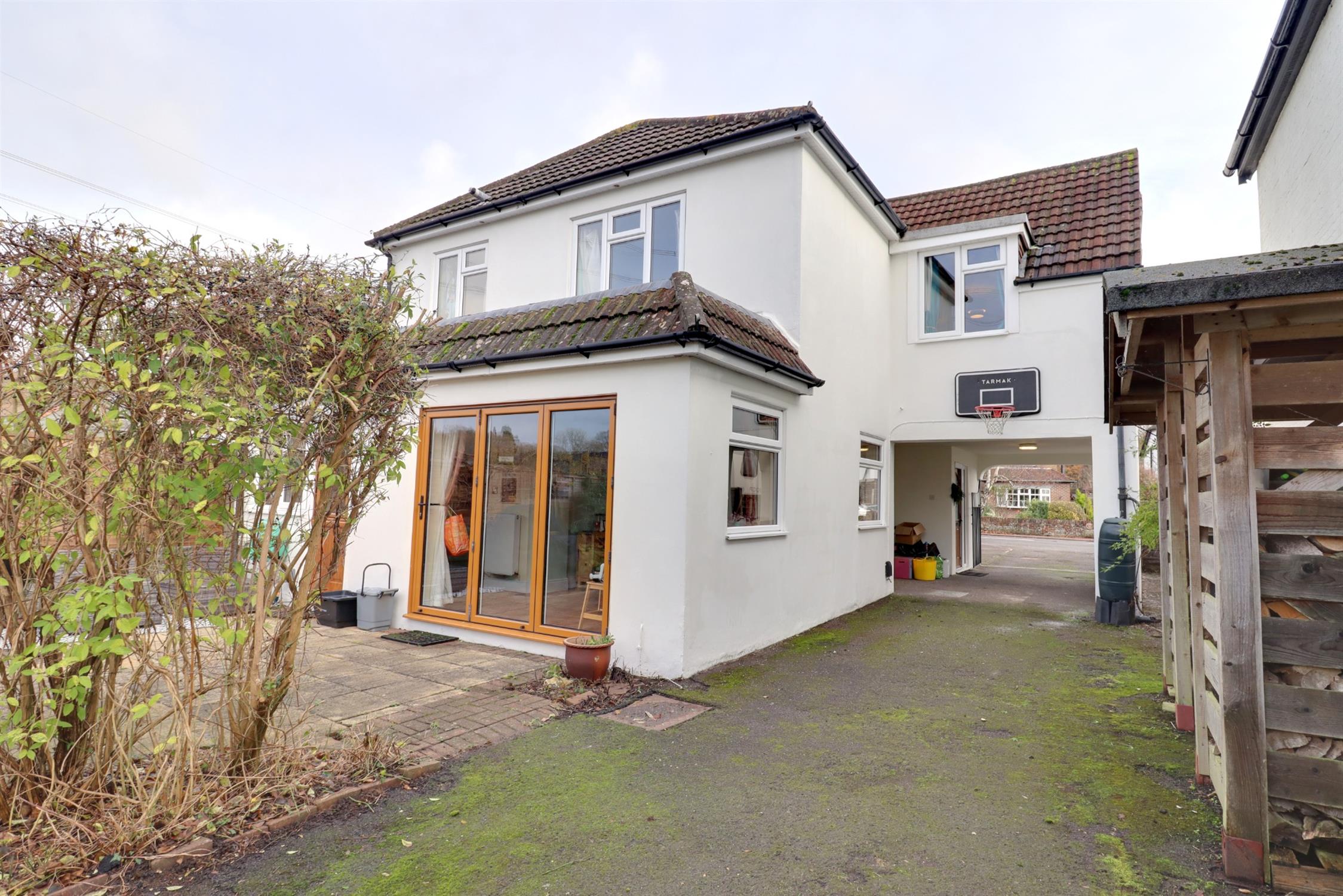 The outside of the property offers ample off road parking, with a drive that goes under the master bedroom and to the rear of the property, past the wood store, to the garage. There are also metal gates across the ‘coach house’ entrance. The gardens feature mature planting, a large patio area, leading from the patio doors in the family room and the single door from the kitchen. Following on from the patio area is a good sized lawned area at the rear of the property, which is fenced on all sides.