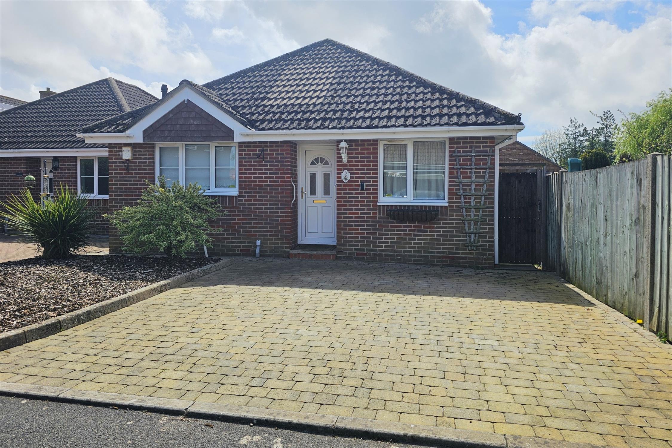 Two bedroom detached bungalow enjoying a small private cul de sac setting within Denmead village centre. The property is ideally situated only minutes' walk from an excellent range of daily shopping, heath centre and cafes. Internally, the accommodation briefly comprises entrance hall leading to lounge with patio doors into a conservatory that opens into a sunny aspect rear garden with shed/workshop, the kitchen/diner with integrated hob and oven, wet room and two bedrooms. The property also benefits from gas fired central heating, double glazing and block paved driveway.
