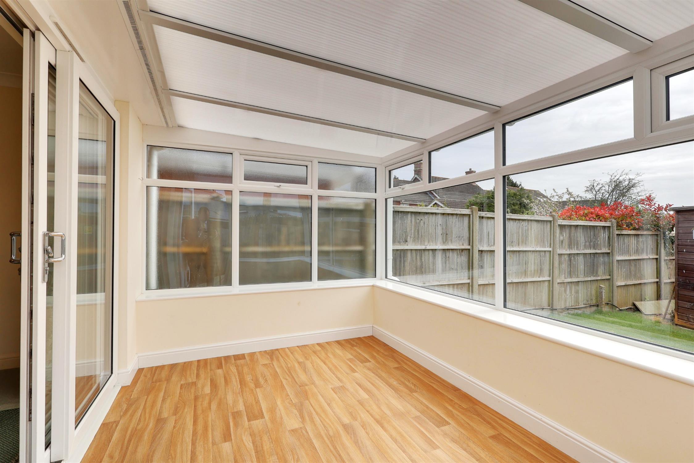 Double glazed, twin aspect room set around living flame gas fire and surround. Two radiators. Patio doors opening to conservatory.